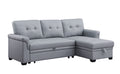 Lexi 83.5" Gray Vegan Leather Modern Reversible Sleeper Sectional Sofa With Storage Chaise Gray Pu Leather
