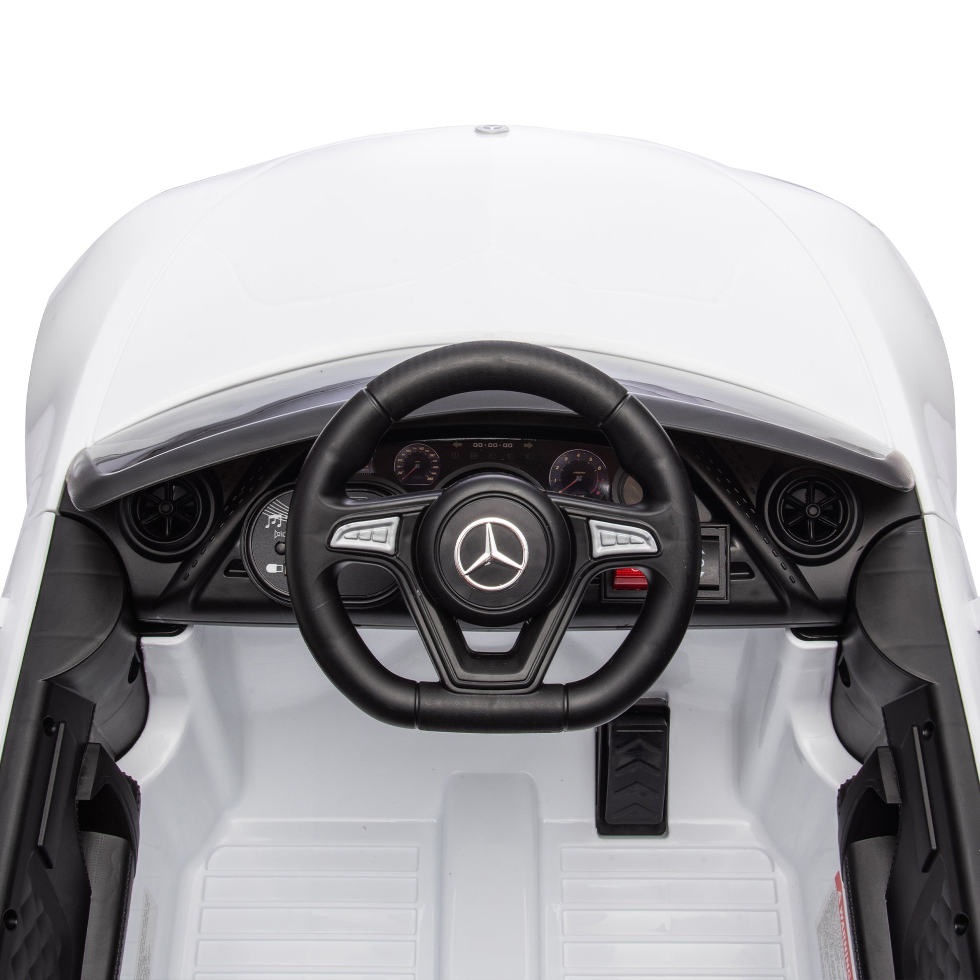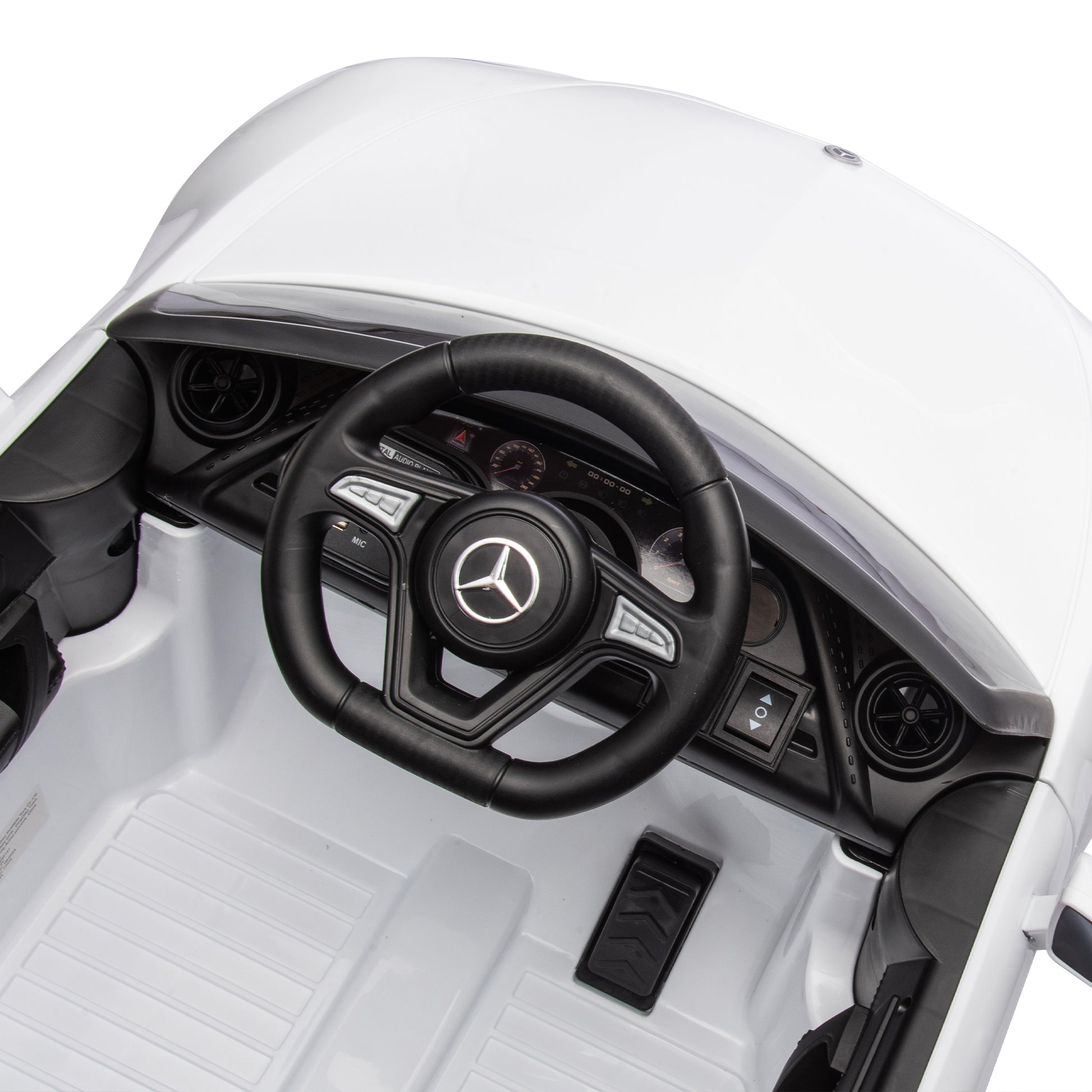 Licensed Mercedes Benz Cls 350,12V Kids Ride On Toy Car W Parents Control,2Wd,Four Wheel Suspension,Music,Bluetooth,Led Light,Usb,Power Display,Volume Adjustment,Speeds 1.24 3.11Mph For Kids Aged 2 4. White 50 99 Lbs Polypropylene