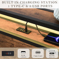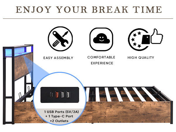 Lift Up Storage Bed Frame, Full Size Bed Frame With Bookcase Headboard & Led Lights, Wooden Platform Bed Frame With Charging Station, No Spring Box Needed, Rustic Brown Box Spring Not Required Full Rustic Brown Metal Brown Bedroom Industrial Bed Frame