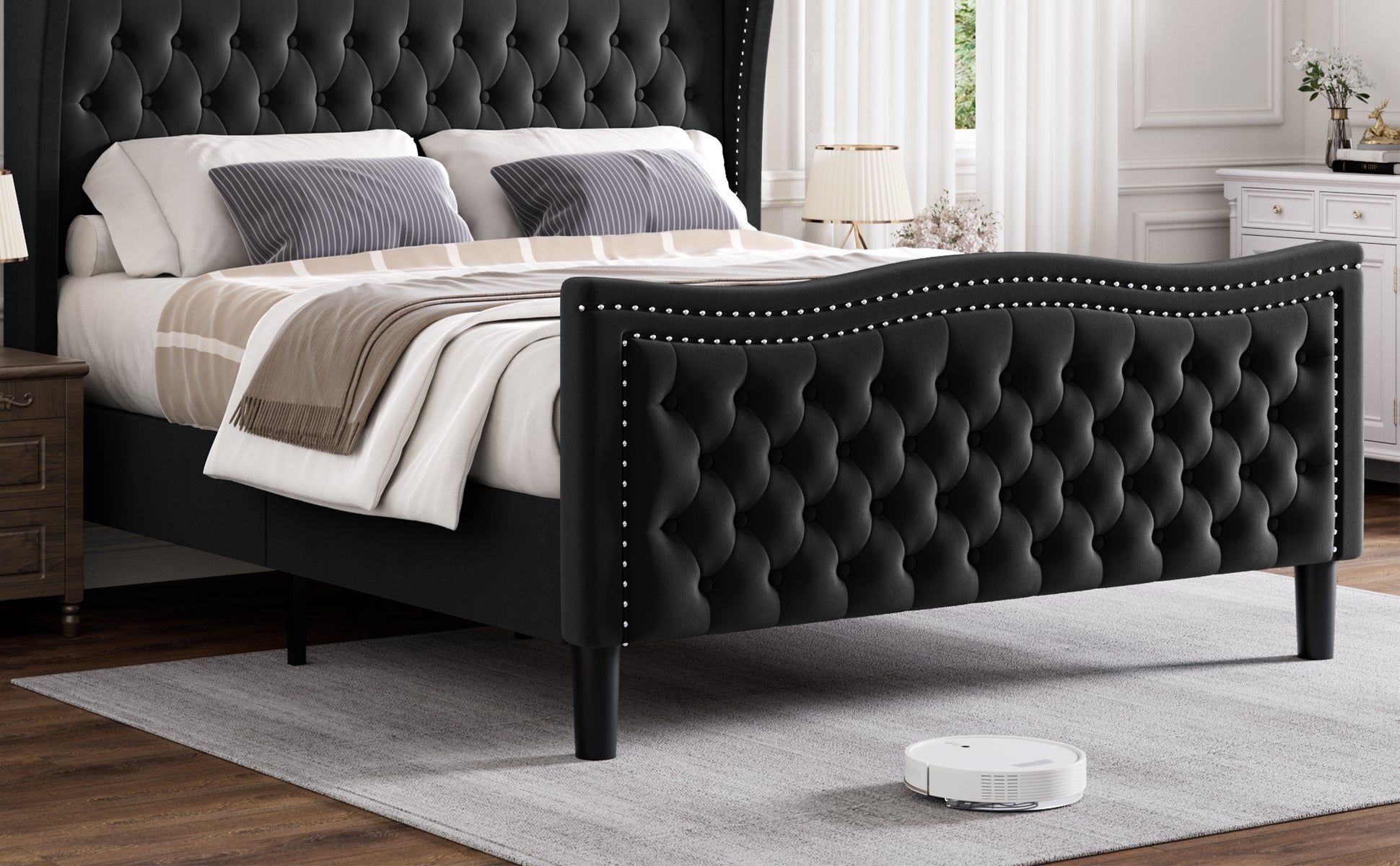 Lift Up Velvet Black Full Size Bed Box Spring Not Required Full Black Wood Light Brown Bedroom American Design Poplar Slat Beds Foam Velvet Upholstered