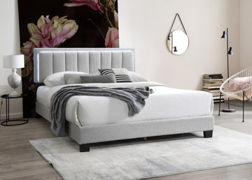Light Gray Wool Fabric 1Pc Queen Size Bed Channel Tufting W Led Full Upholstered Bedframe Bedroom Bed Box Spring Not Required Queen Light Gray Wood Bedroom Contemporary,Modern Bed Frame Wool