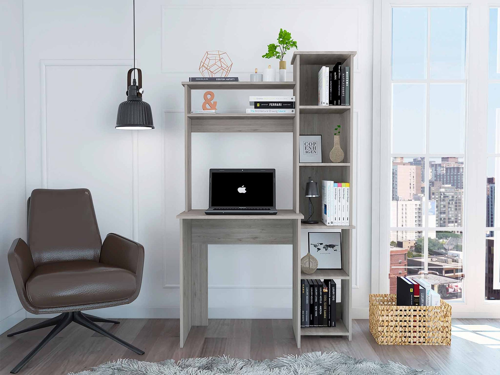 Light Grey 6 Shelf Writing Desk With Built In Bookcase Light Gray Particle Board