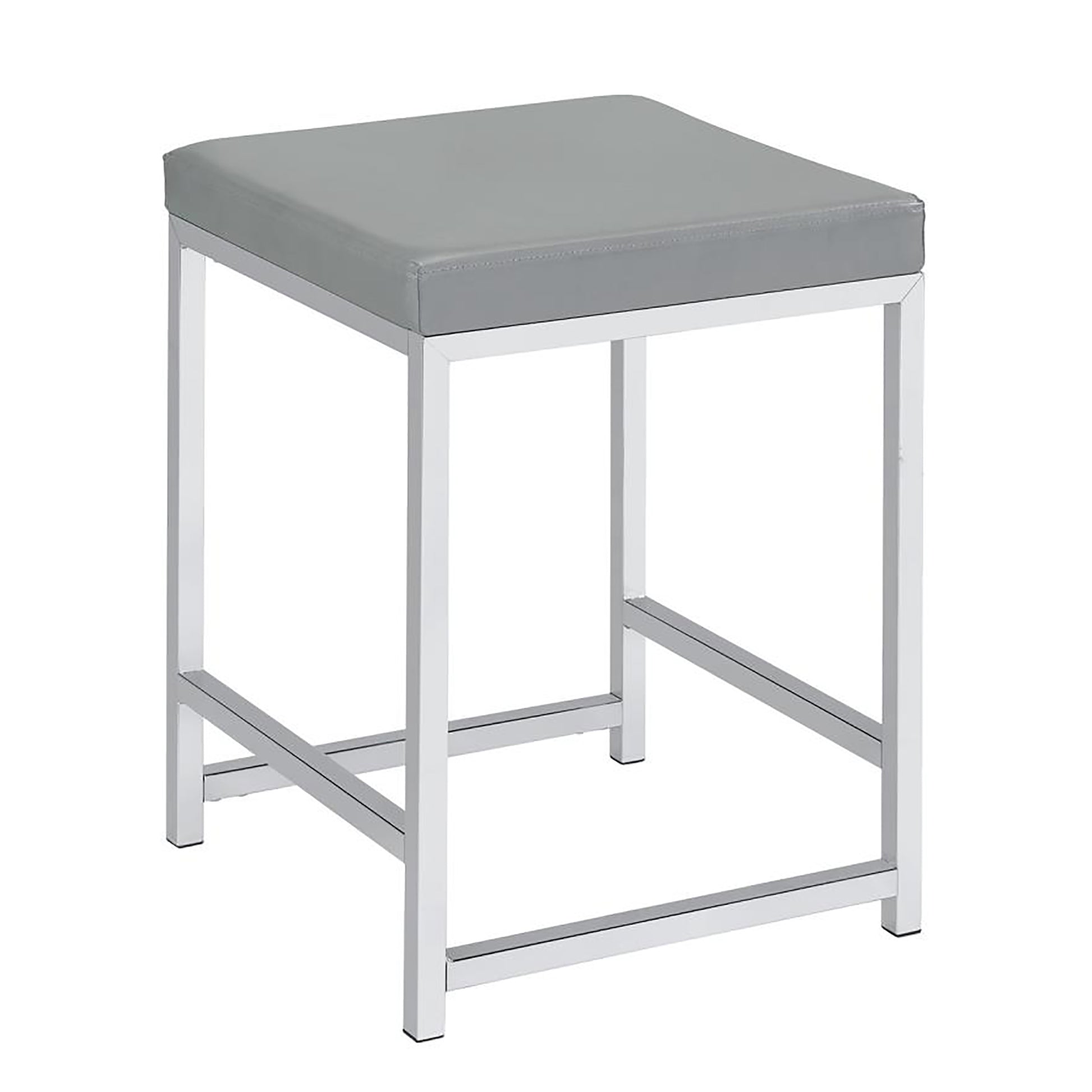 Light Grey Upholstered Square Vanity Stool Light Gray Vanity Stools Faux Leather Bedroom Square Grey Contemporary,Modern Backless Foam Faux Leather