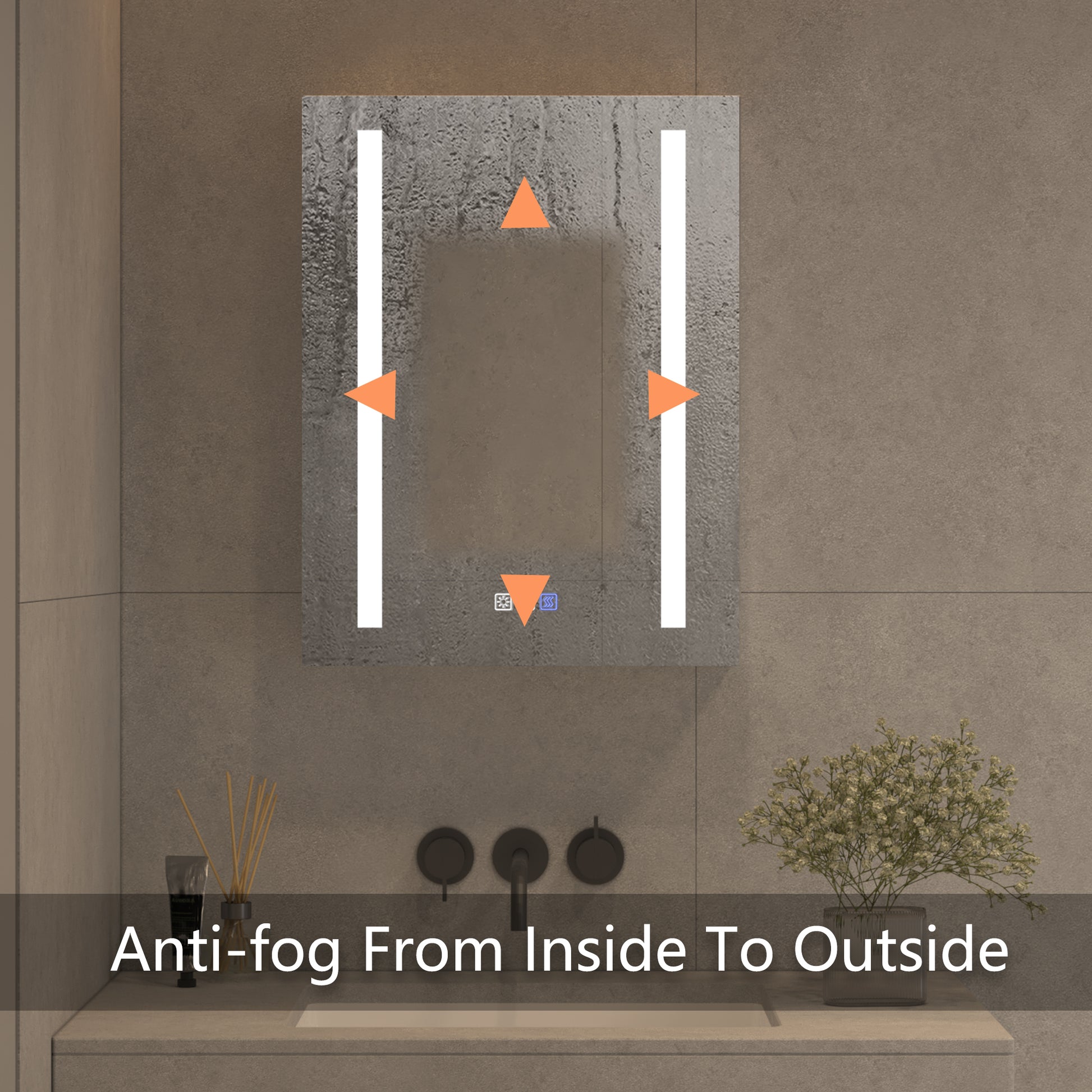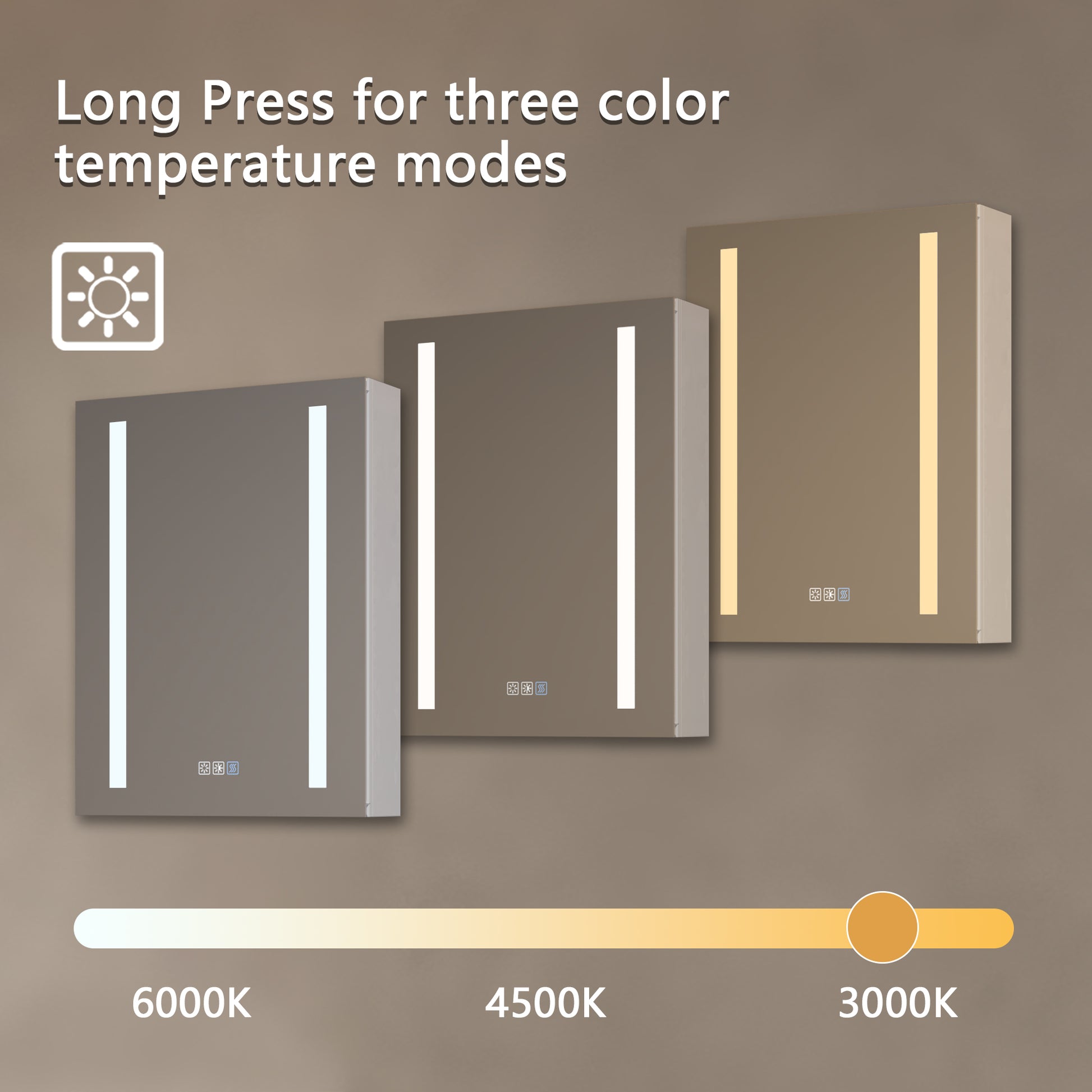 Lighted Medicine Cabinet 20 X 26 Inch, Recessed Or Surface Led Medicine Cabinet,Room Temp Display,Defog,Night Light,Stepless Dimming,3000K 6400K, Outlets & Usbs,Hinge On The Left. Silver Aluminium