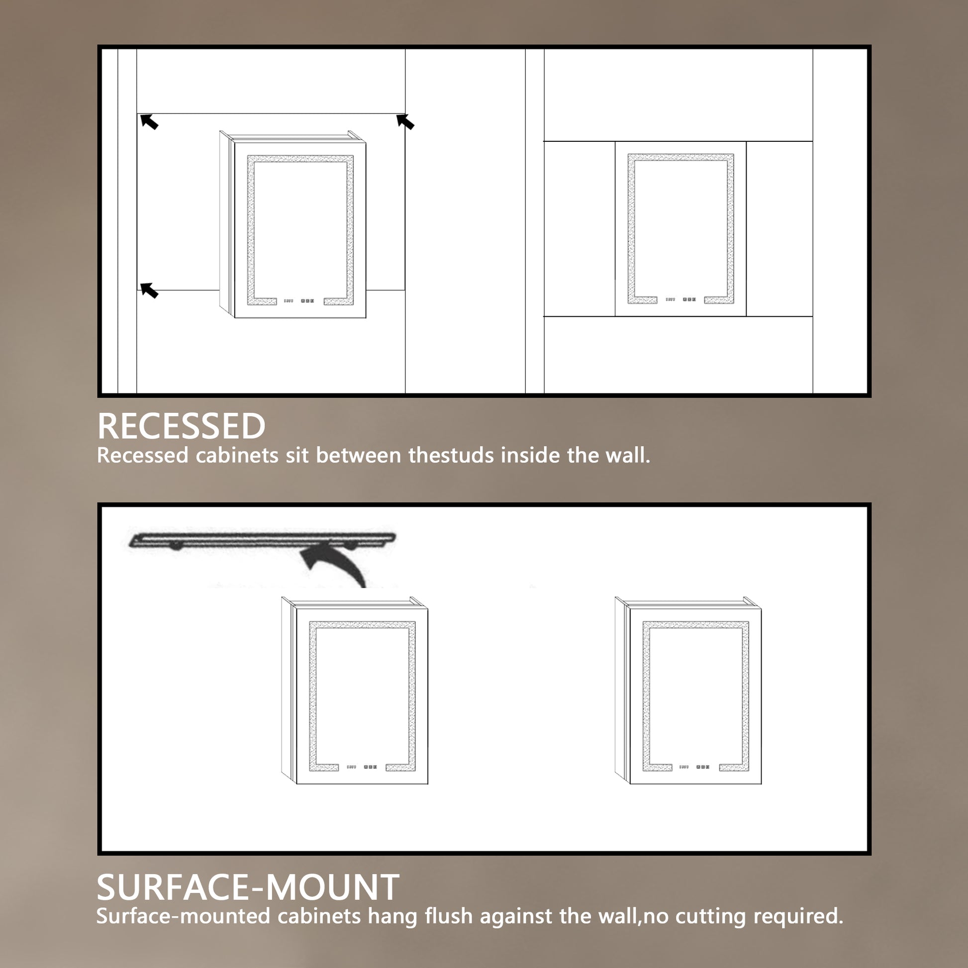 Lighted Medicine Cabinet 20 X 32 Inch, Recessed Or Surface Led Medicine Cabinet, Clock, Room Temp Display,Defog,Night Light,Stepless Dimming,3000K 6400K, Outlets & Usbs,Hinge On The Right Silver Aluminium