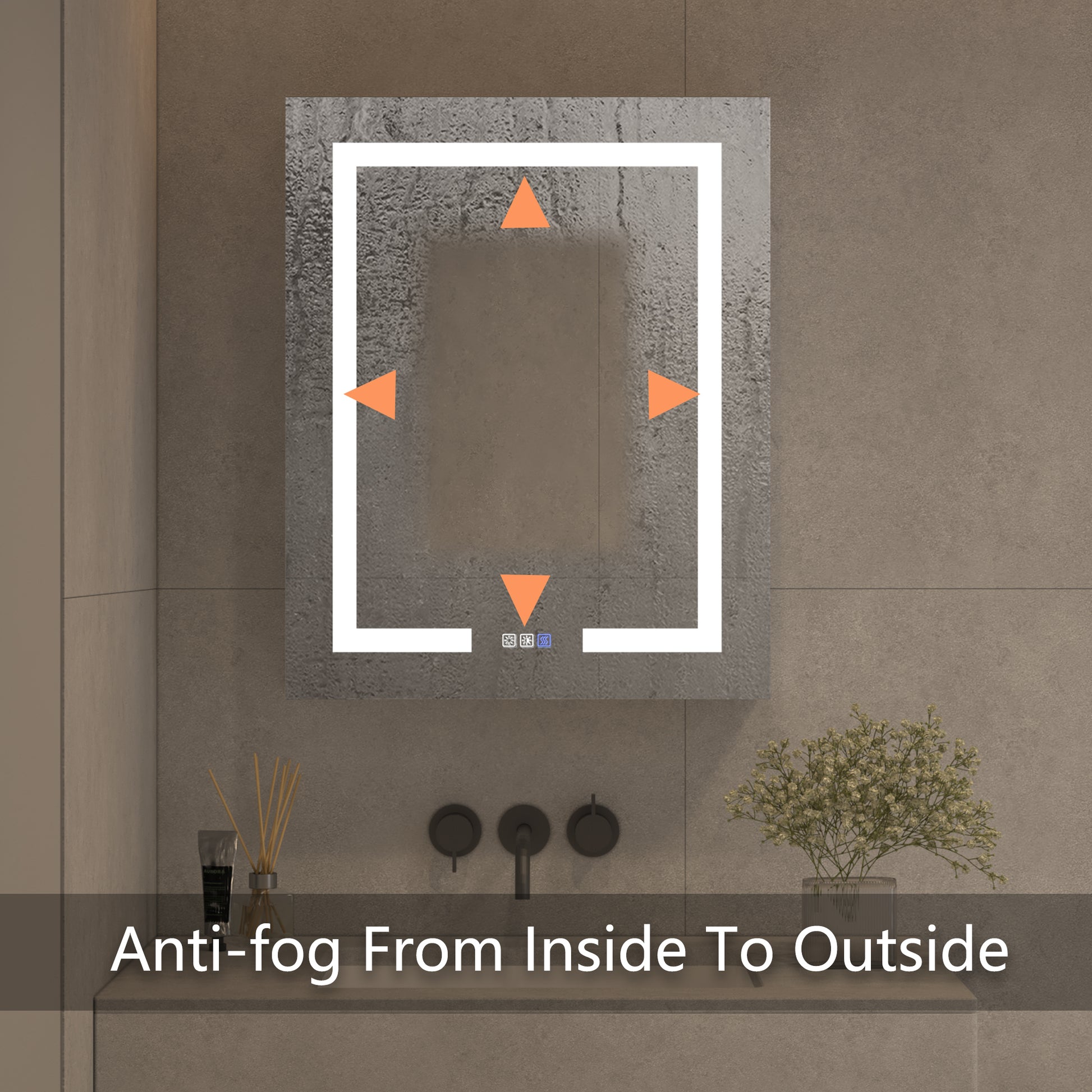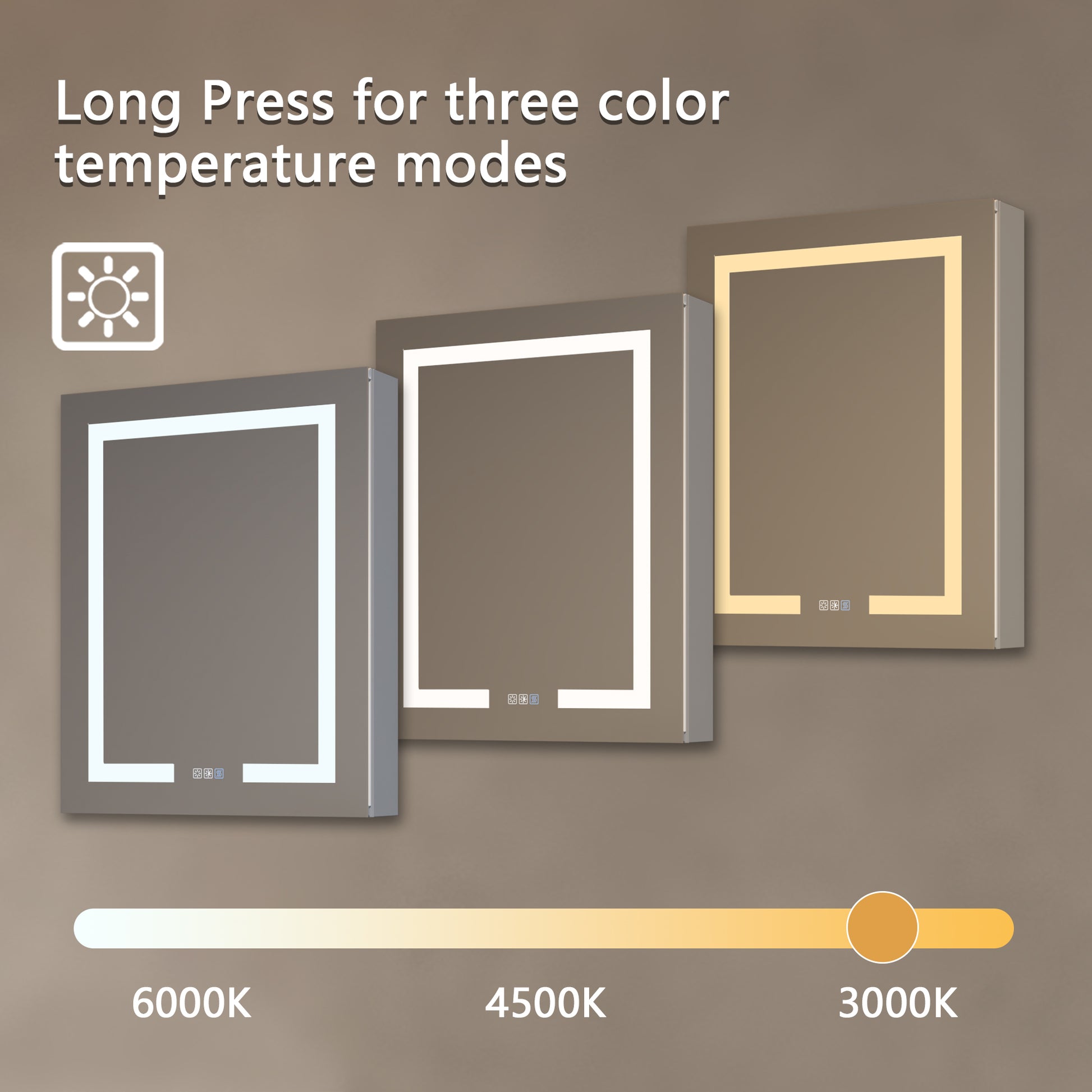 Lighted Medicine Cabinet 24 X 30 Inch, Recessed Or Surface Led Medicine Cabinet,Defog,Stepless Dimming,3000K 6400K, Outlets & Usbs,Hinge On The Left. Silver Aluminium