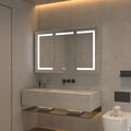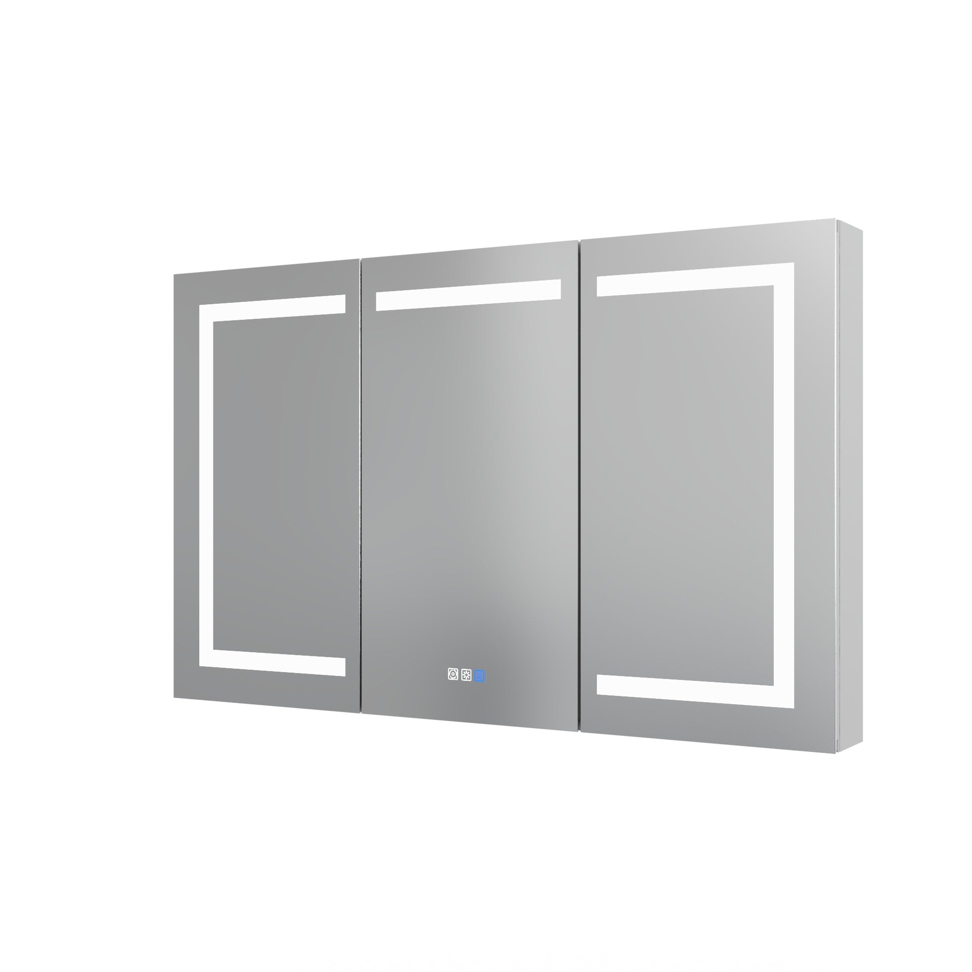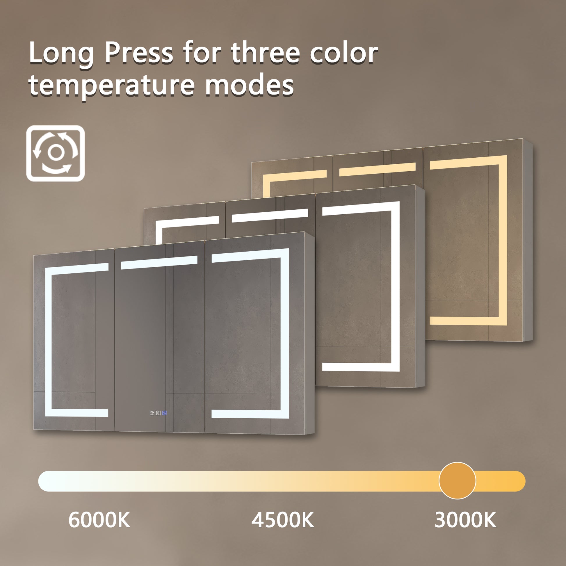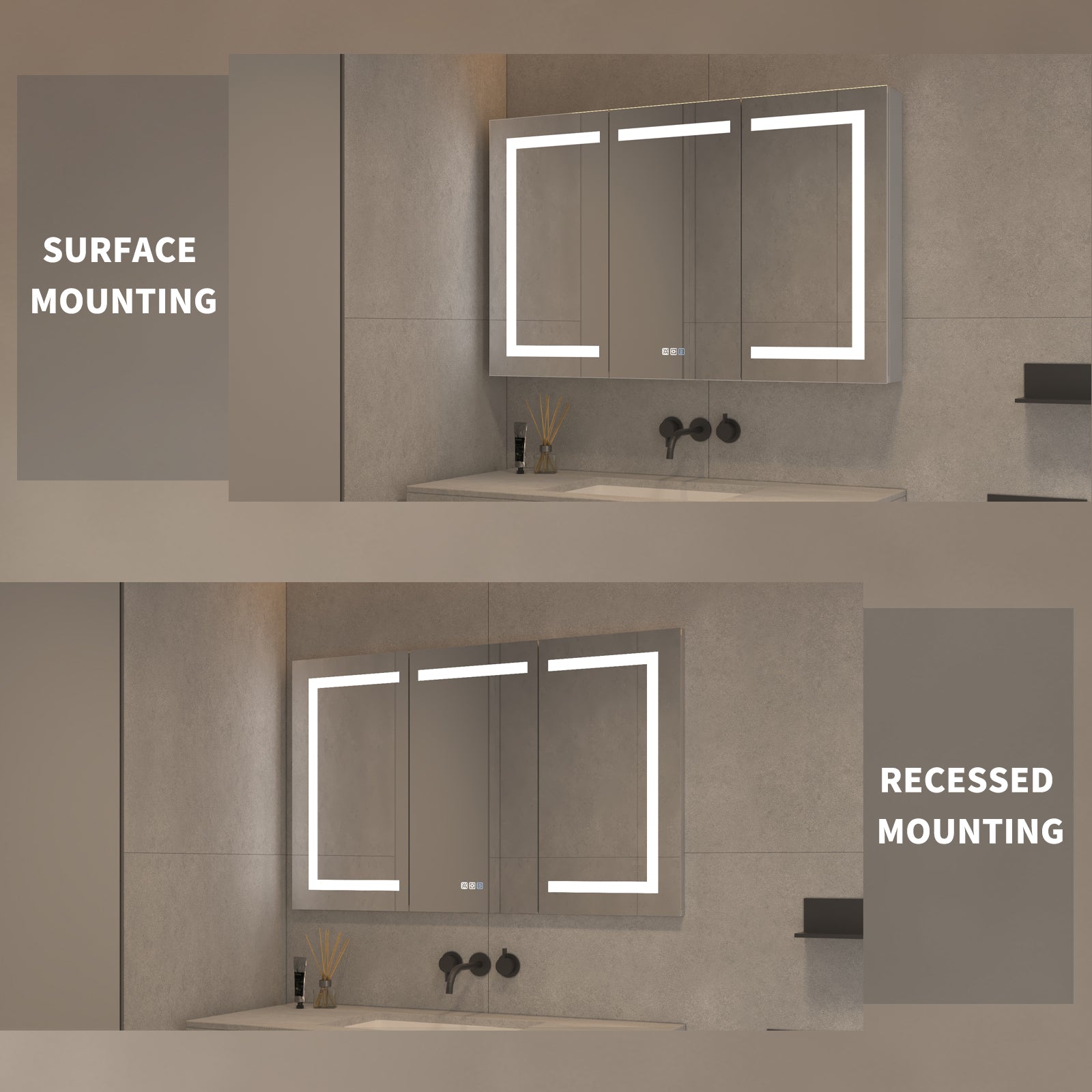 Lighted Medicine Cabinet 48 X30 Inch, Recessed Or Surface Led Medicine Cabinet,Defog,Stepless Dimming,3000K 6400K, Outlets & Usbs,The 3 Sided Mirrored Door. Silver Aluminium