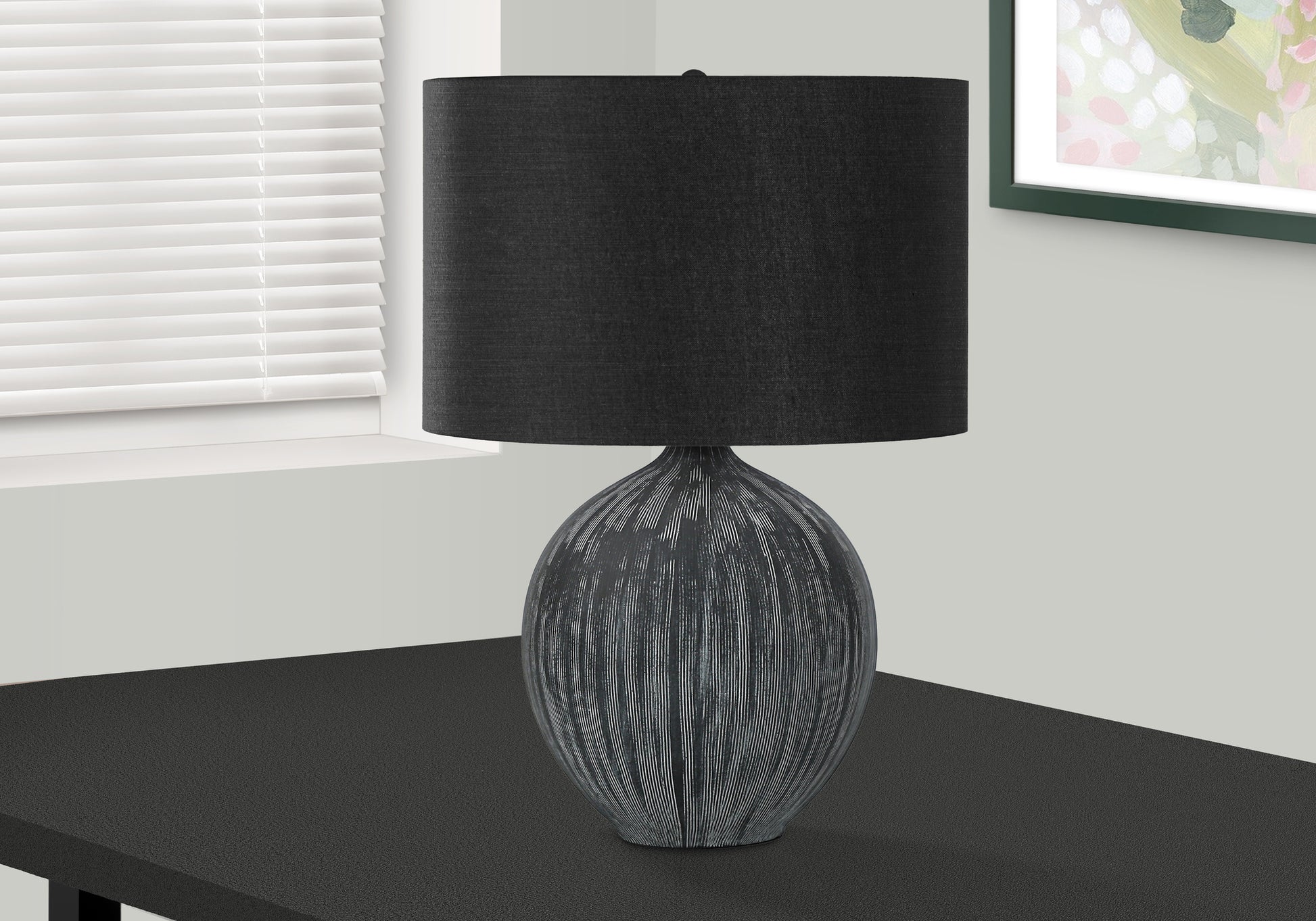 Lighting, 23"H, Table Lamp, Black Ceramic, Black Shade, Contemporary Black Ceramic