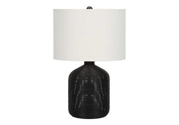Lighting, 23"H, Table Lamp, Black Rattan, Ivory Cream Shade, Modern Black Rattan