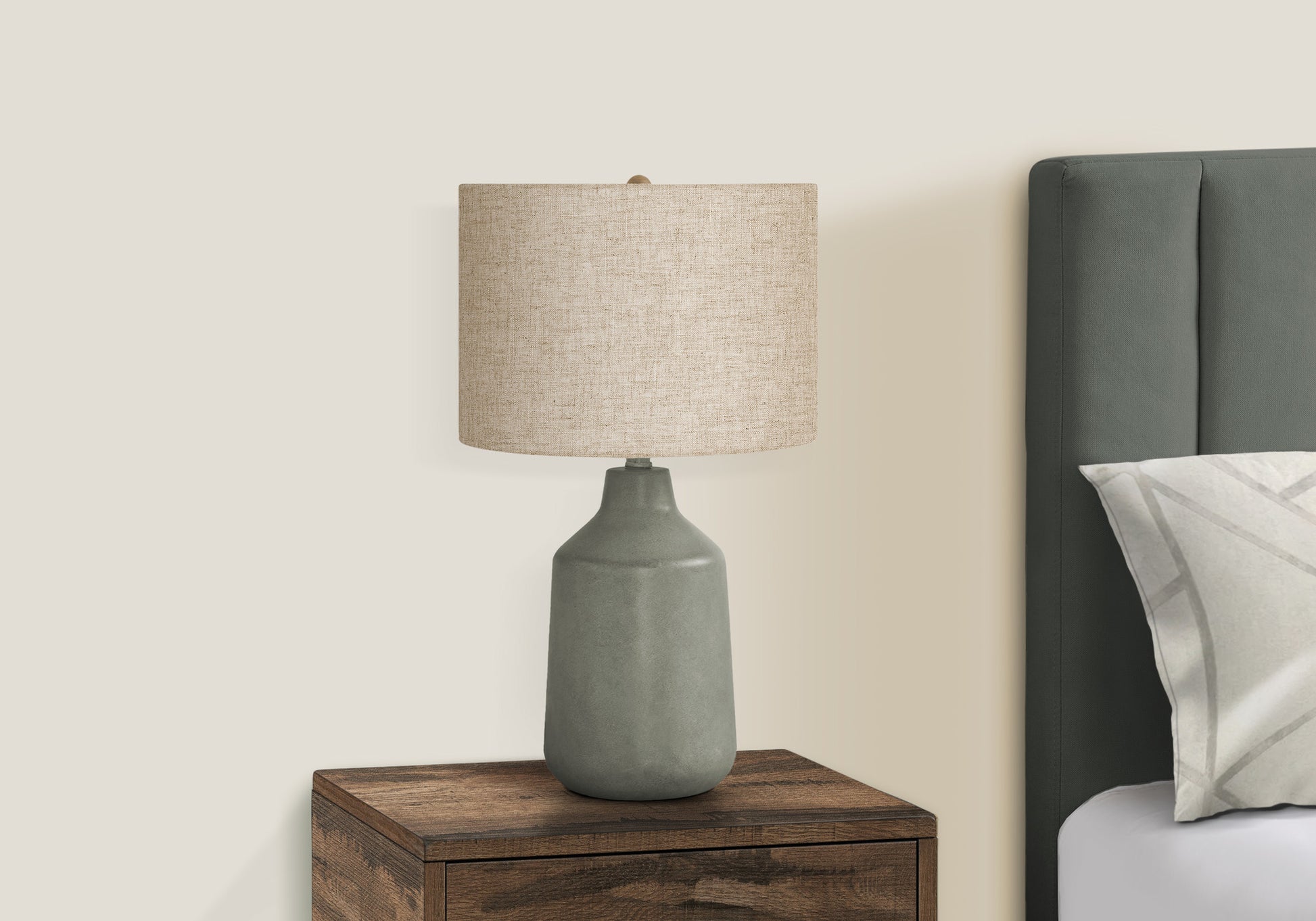 Lighting, 24"H, Table Lamp, Grey Concrete, Beige Shade, Contemporary Grey Concrete