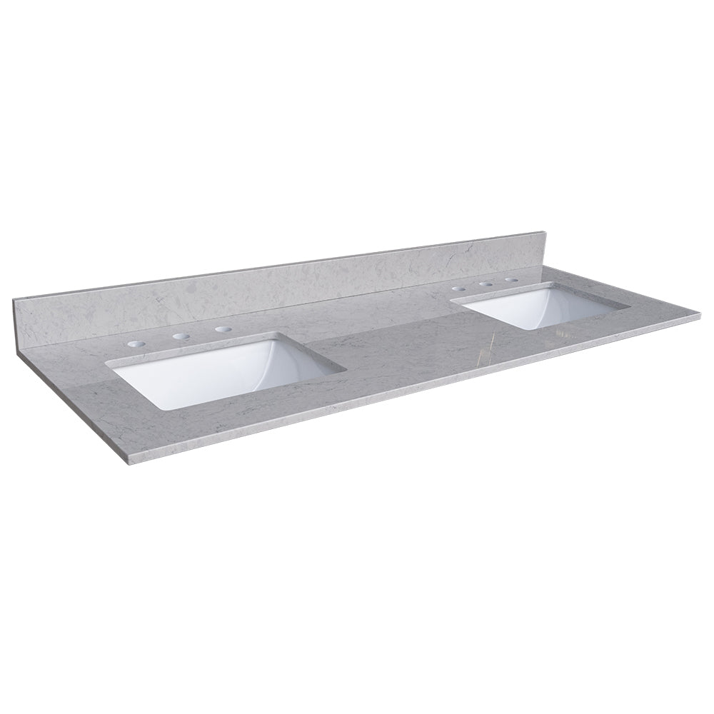 Lightning White Engineered Stone Vanity Top Side Backsplash White Stone