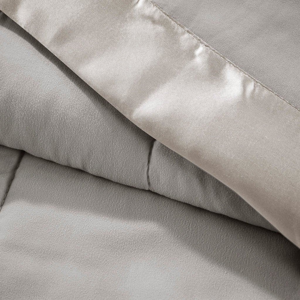 Lightweight Down Alternative Blanket With Satin Trim Grey Polyester
