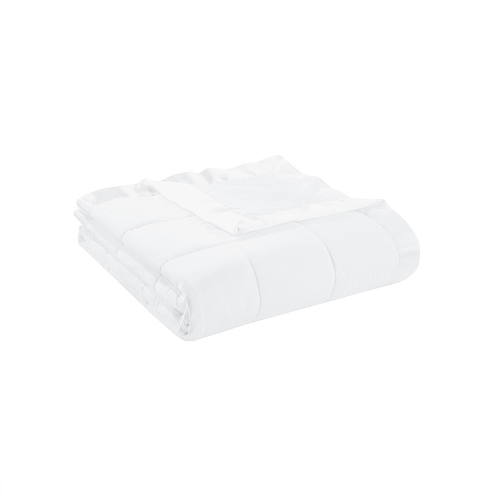 Lightweight Down Alternative Blanket With Satin Trim White Polyester