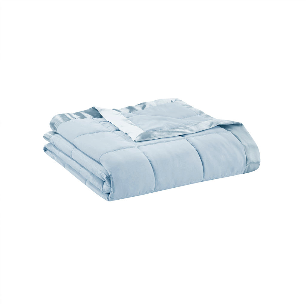 Lightweight Down Alternative Blanket With Satin Trim Blue Polyester