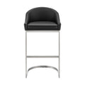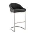 Lina 28 Inch Bar Stool Chair, Metal Cantilever Base, Black Faux Leather Black And Silver Fabric Metal