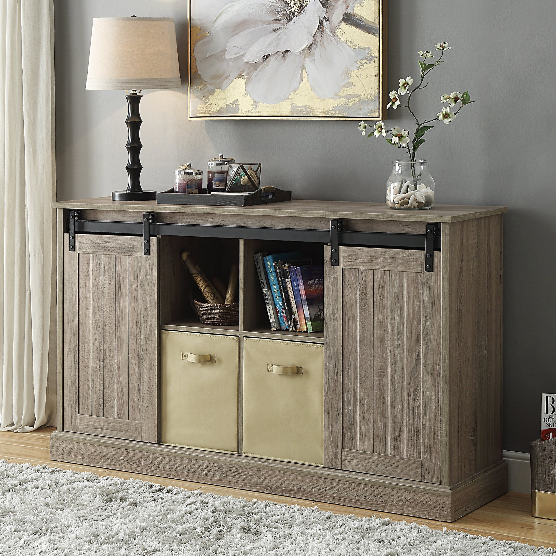 Lincoln Farmhouse 60 Inch Tv Stand For Tvs Up To 65 Inches, Stonewash Grey Finish Grey 60 69 Inches Mdf Mdf