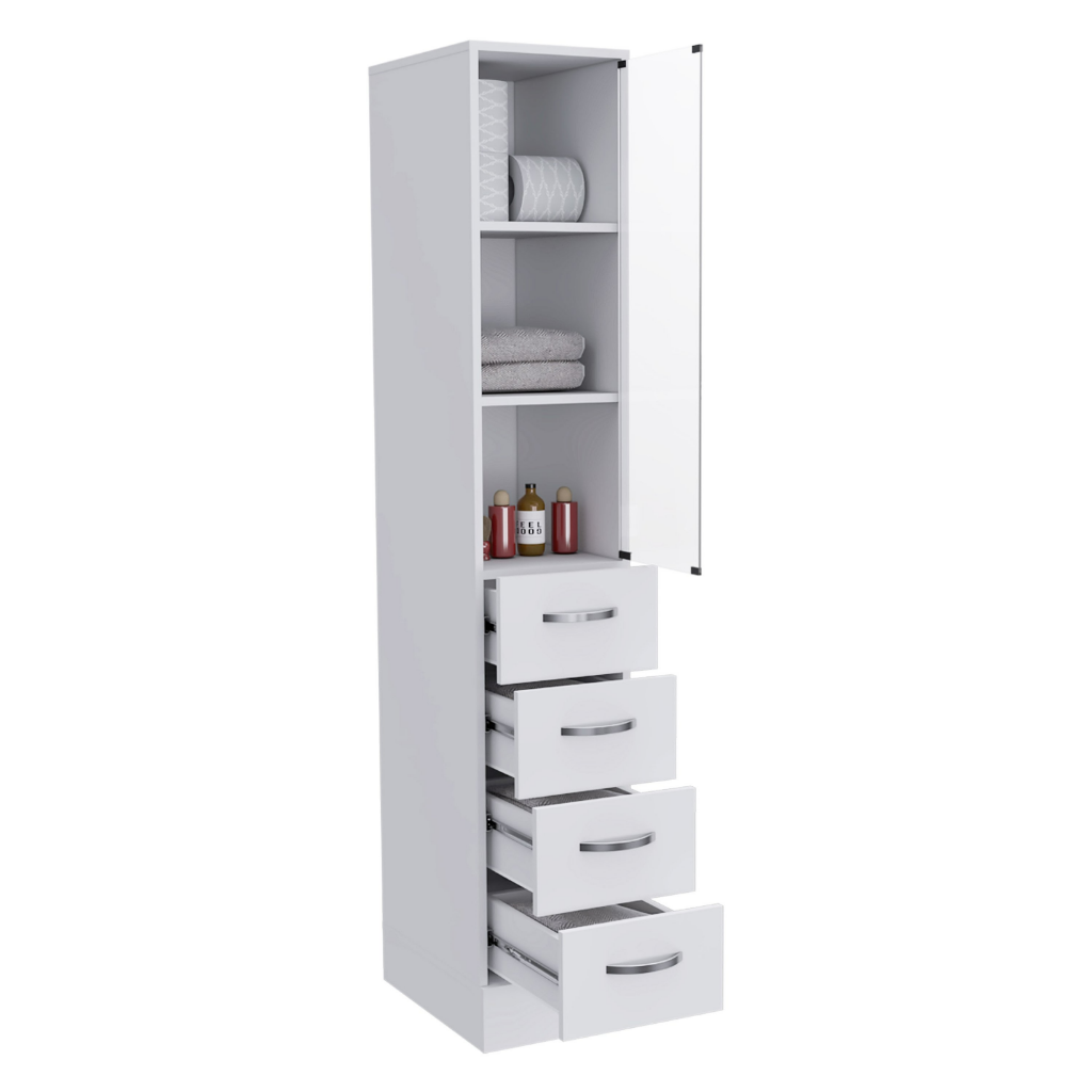 Linen Cabinet Artic, Three Shelves, Single Door, White Finish White Particle Board