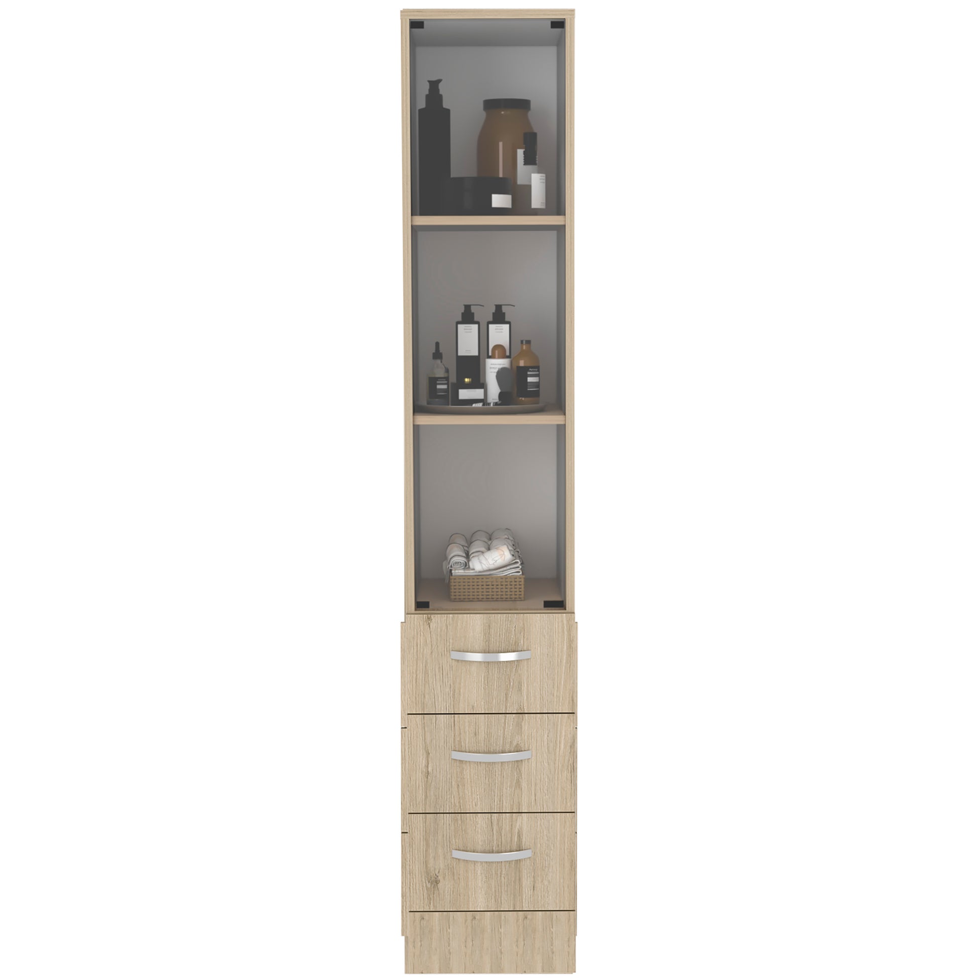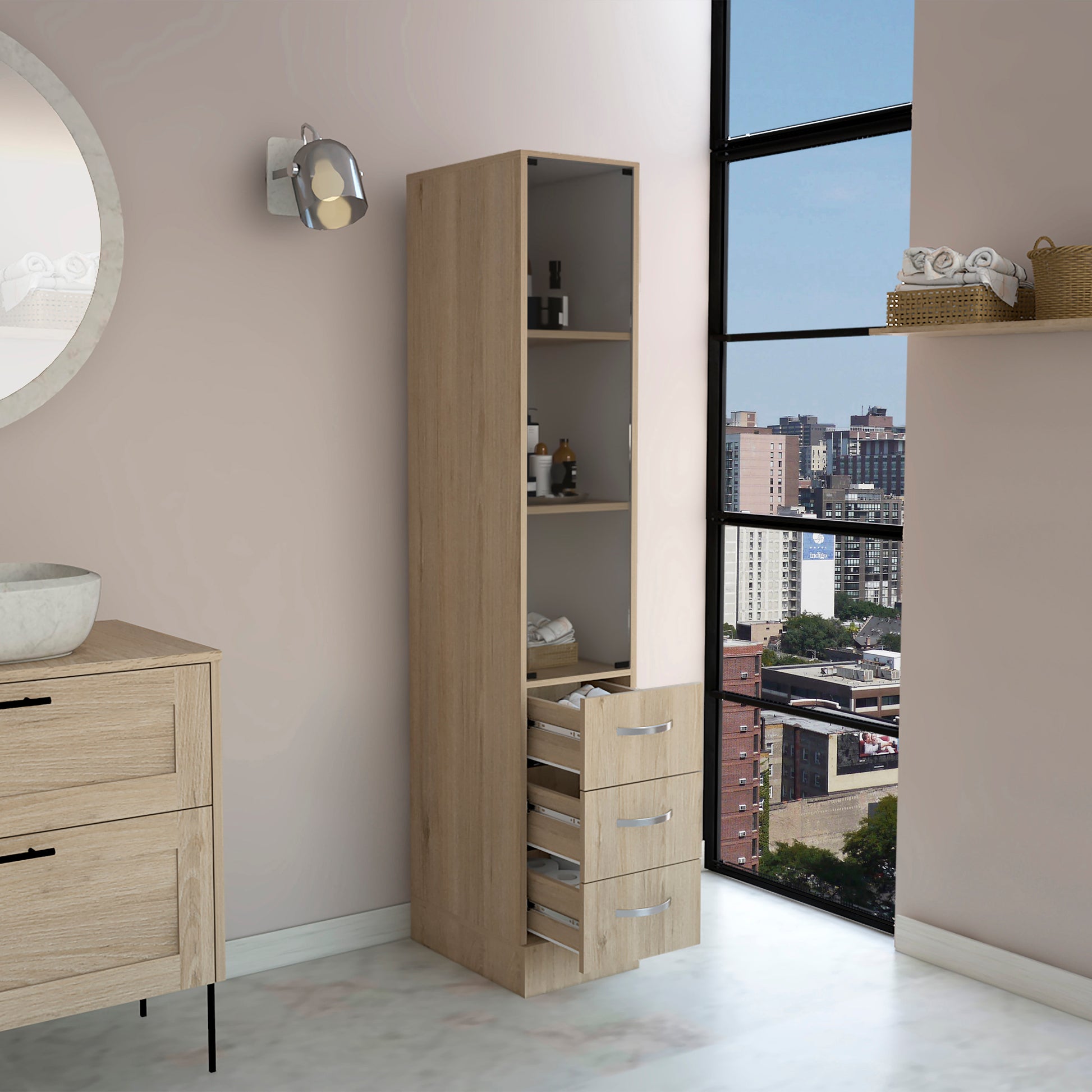 Linen Cabinet, Three Shelves, Four Drawers, Light Pine White Multicolor Solid Wood Mdf Engineered Wood