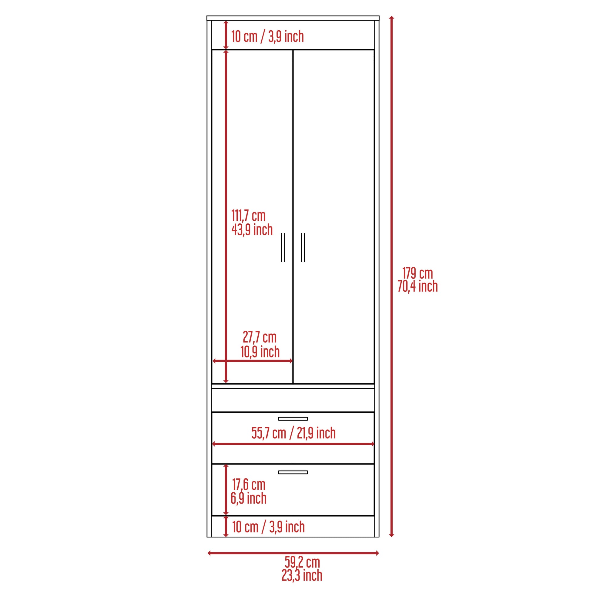 Name: Lisboa Armoire, Rod, Double Door, Two Drawers, Metal Handles