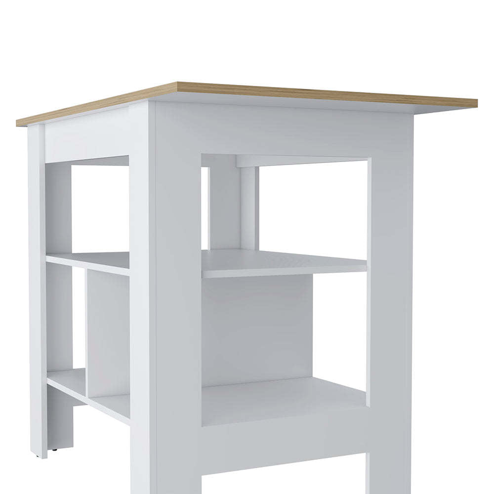 Lisbon Kitchen Island, 3 Tier Shelf And Large Workstation Multicolor Mdf Engineered Wood