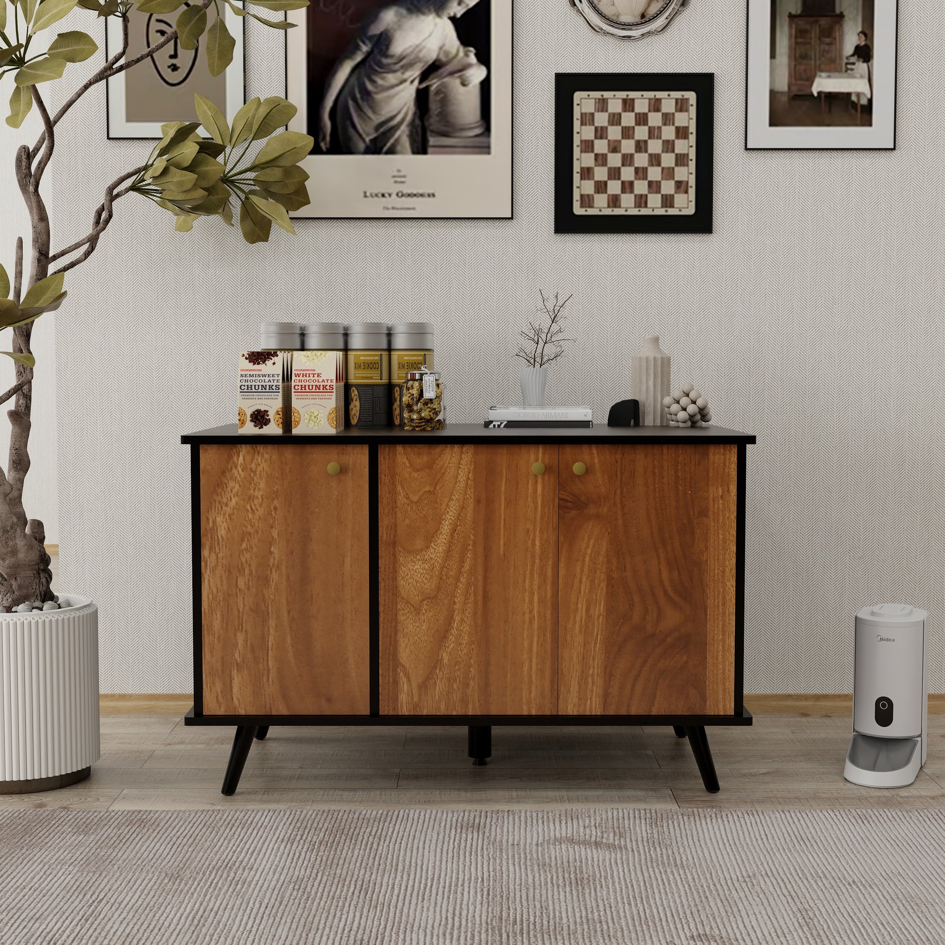 Litter Box Enclosure, Cat Litter Box Furniture With Hidden Plug, 3 Doors,Indoor Cat Washroom Storage Bench Side Table Cat House, Large Wooden Enclused Litter Box House, Black And Walnut Black Brown Mdf