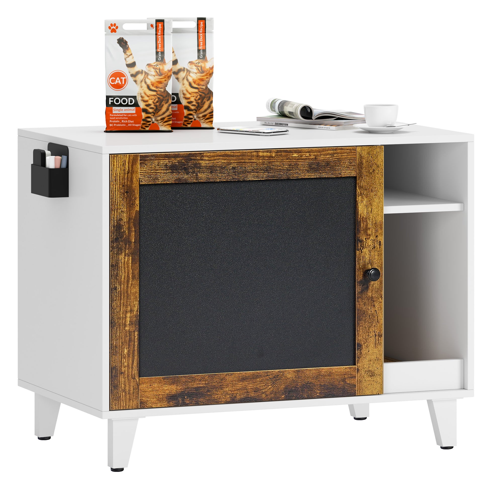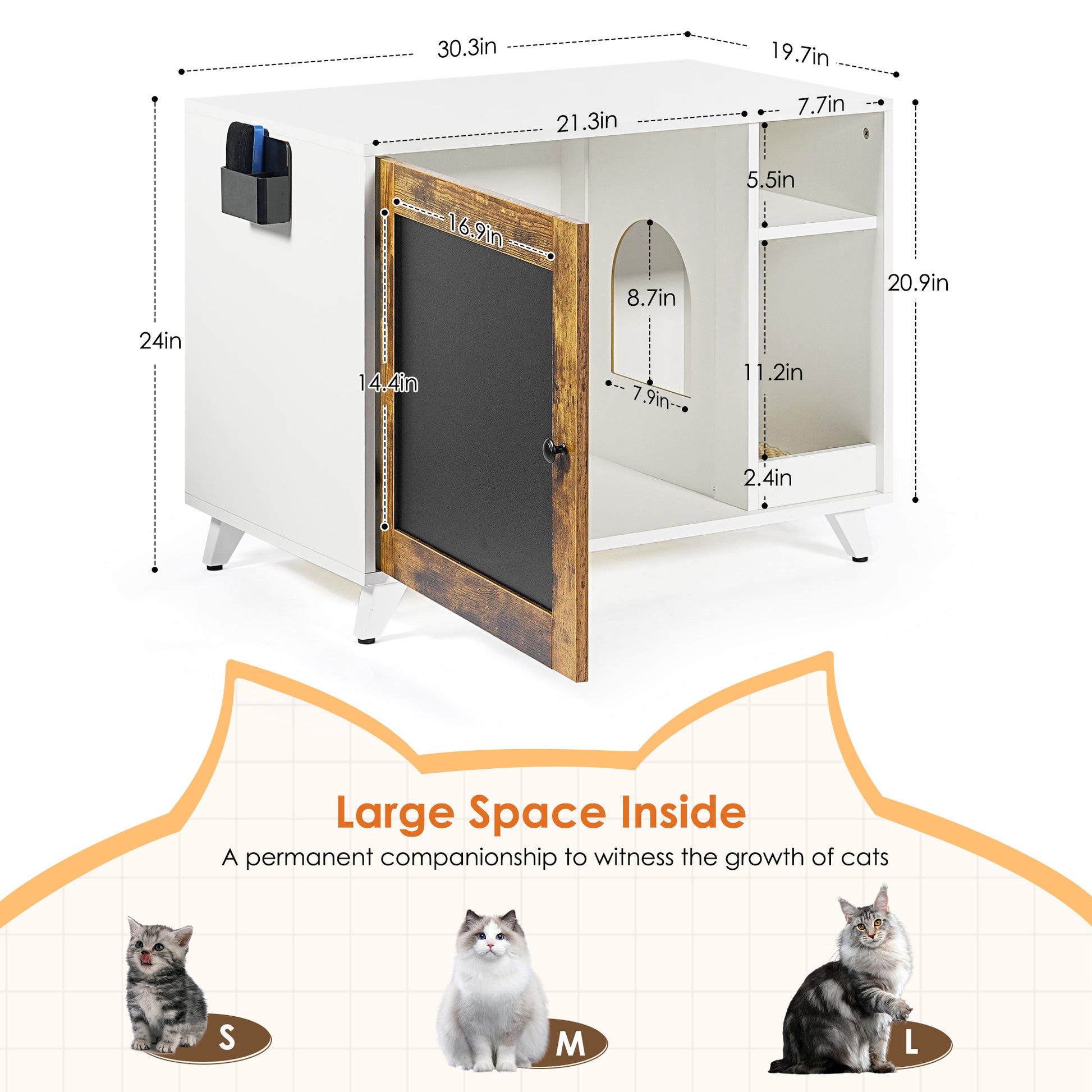 Litter Box Enclosure,Modern Hidden Cat Litter Box Enclosure Furniture With Scratching Pad For Living Room, White Vintage Color Door Frame White Vintage Particle Board