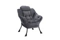 Living Room Chairs Modern Cotton Fabric Lazy Chair, Accent Contemporary Lounge Chair, Single Steel Frame Leisure Sofa Chair With Armrests And A Side Pocket Dark Gray ,With Ottoman ,With Footrest