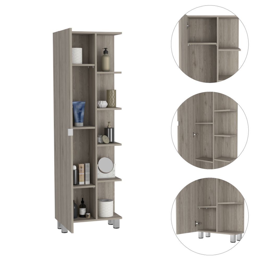 Los Angeles Corner Cabinet, Five Shelves, One Cabinet, Divisions Beige 1 5 18 To 23 In 60 In & Above Bathroom Freestanding Contemporary 5 10 Inches Melamine Particle Board