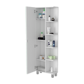 Los Angeles Linen Cabinet, Mirror, Five Shelves White 1 18 To 23 In 60 In & Above Mirror Included Freestanding Modern 5 10 Inches Melamine Engineered Wood