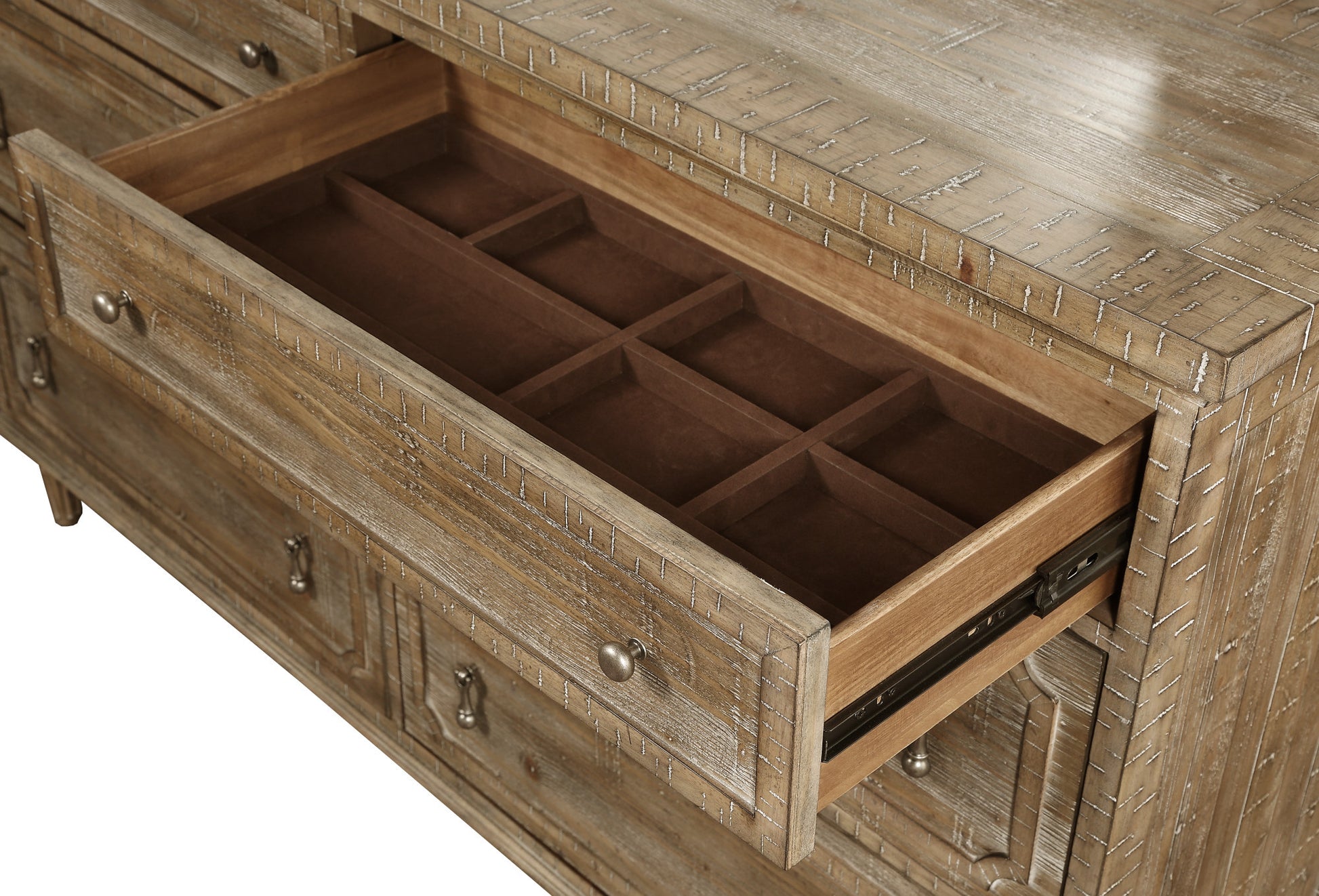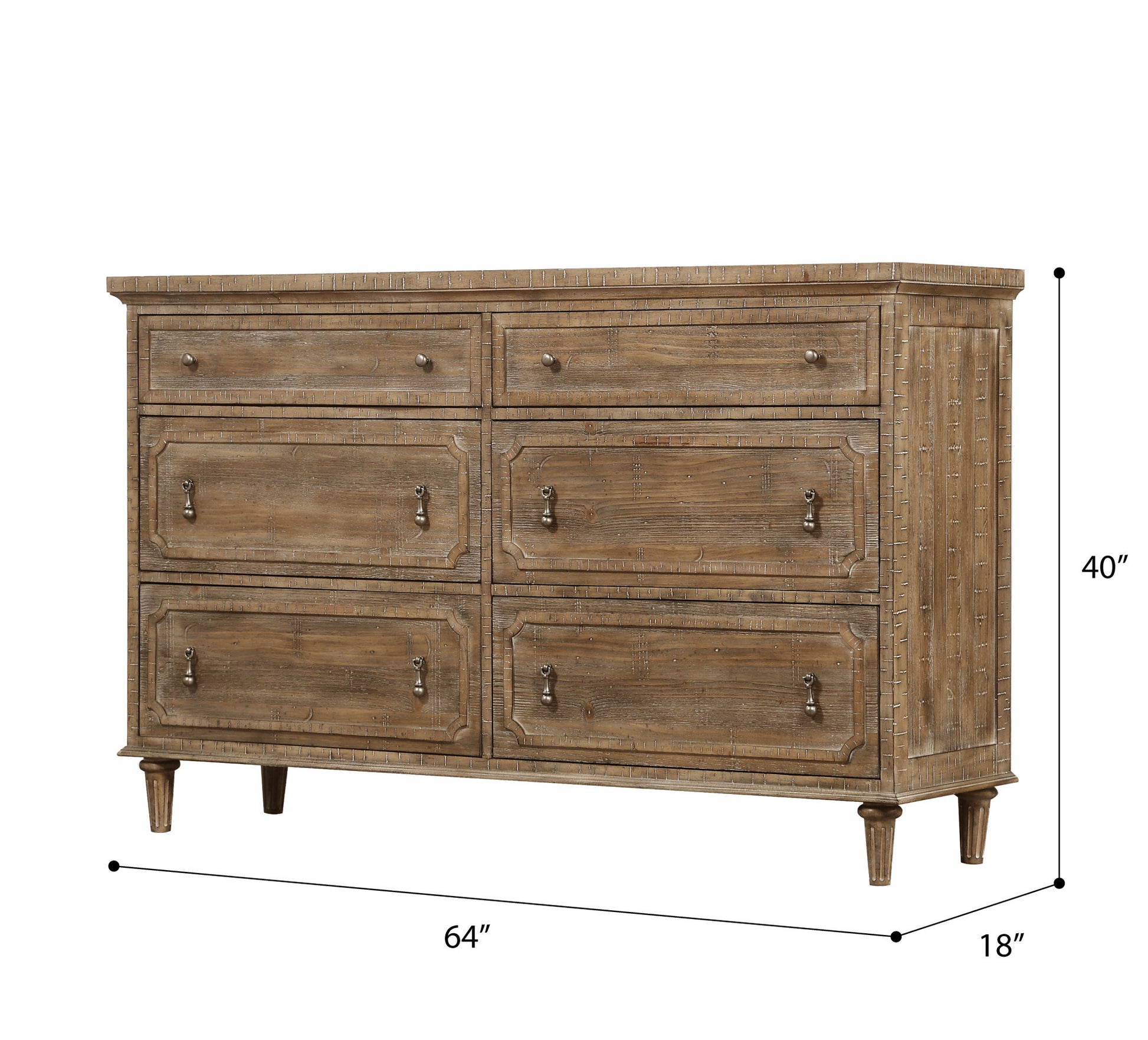 Ludin Taupe 6 Drawer Dresser Taupe Solid Wood