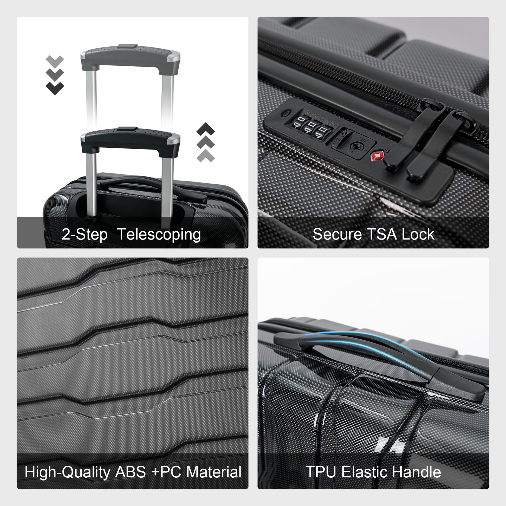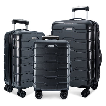 Luggage 3 Piece Sets With Spinner Wheels Abs Pc Lightweight Tsa Lock 20' 24' 28' , Black Black Abs Pc