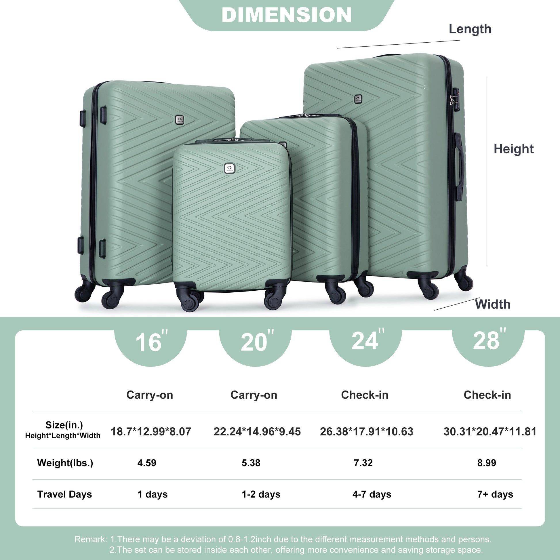 Luggage 4 Piece Abs Lightweight Suitcase With Rotating Wheels, 24 Inch And 28 Inch With Tsa Lock, 16 20 24 28 Olive Green Olive Green Abs