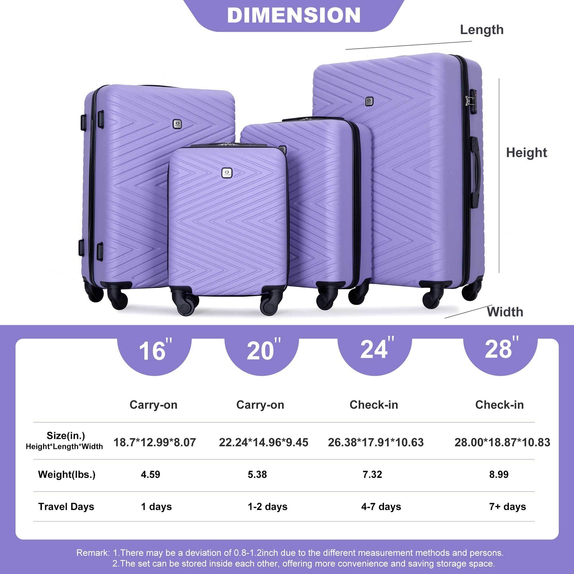 Luggage 4 Piece Abs Lightweight Suitcase With Rotating Wheels, 24 Inch And 28 Inch With Tsa Lock, 16 20 24 28 Light Purple Light Purple Abs