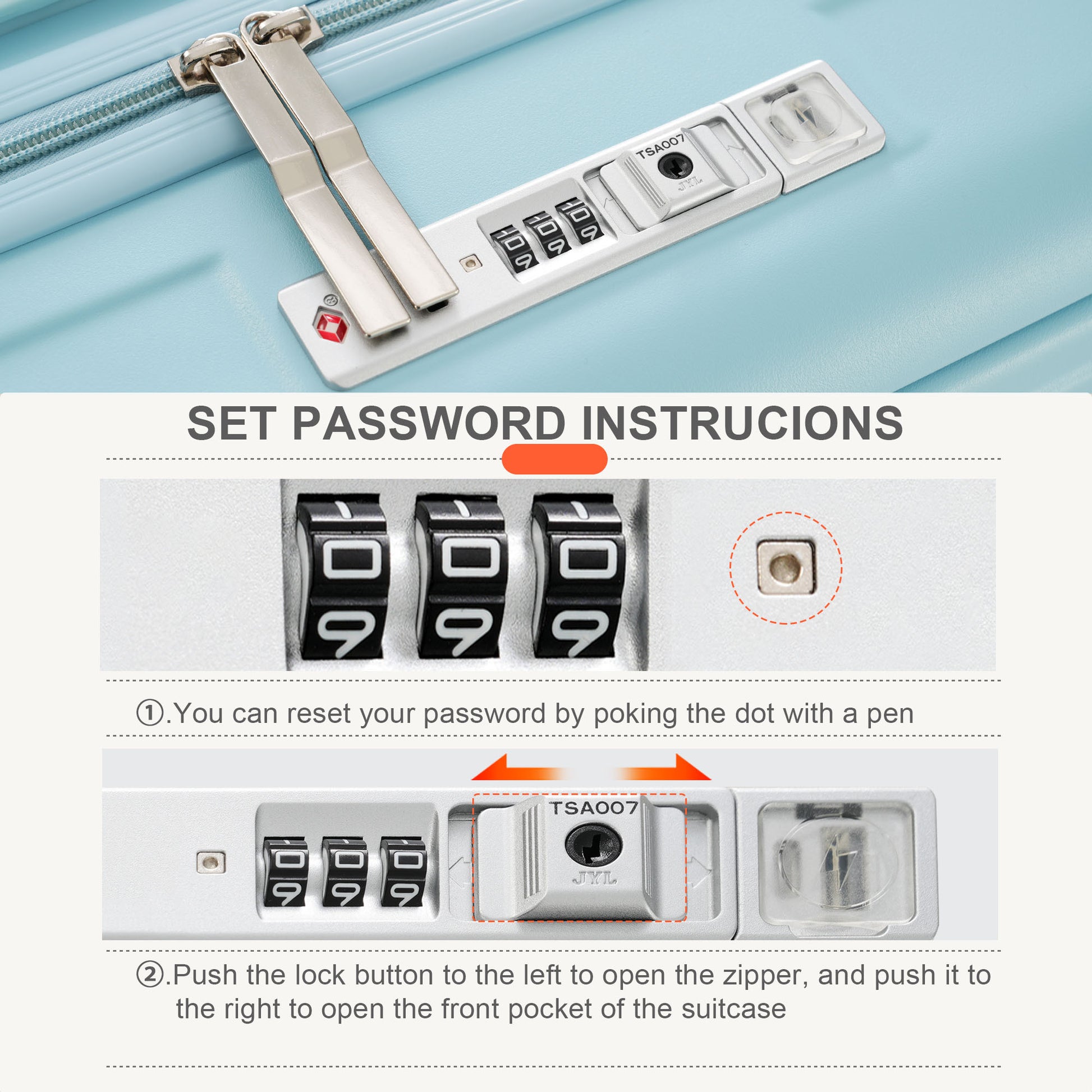 Luggage Set Of 3, 20, 24, 28Inch With Usb Port, 20, 24Inch With Front Opening Design Airline Certified Carry On Luggage With Cup Holder, Abs Hard Shell Luggage With Spinner Wheels, Light Blue Blue Abs