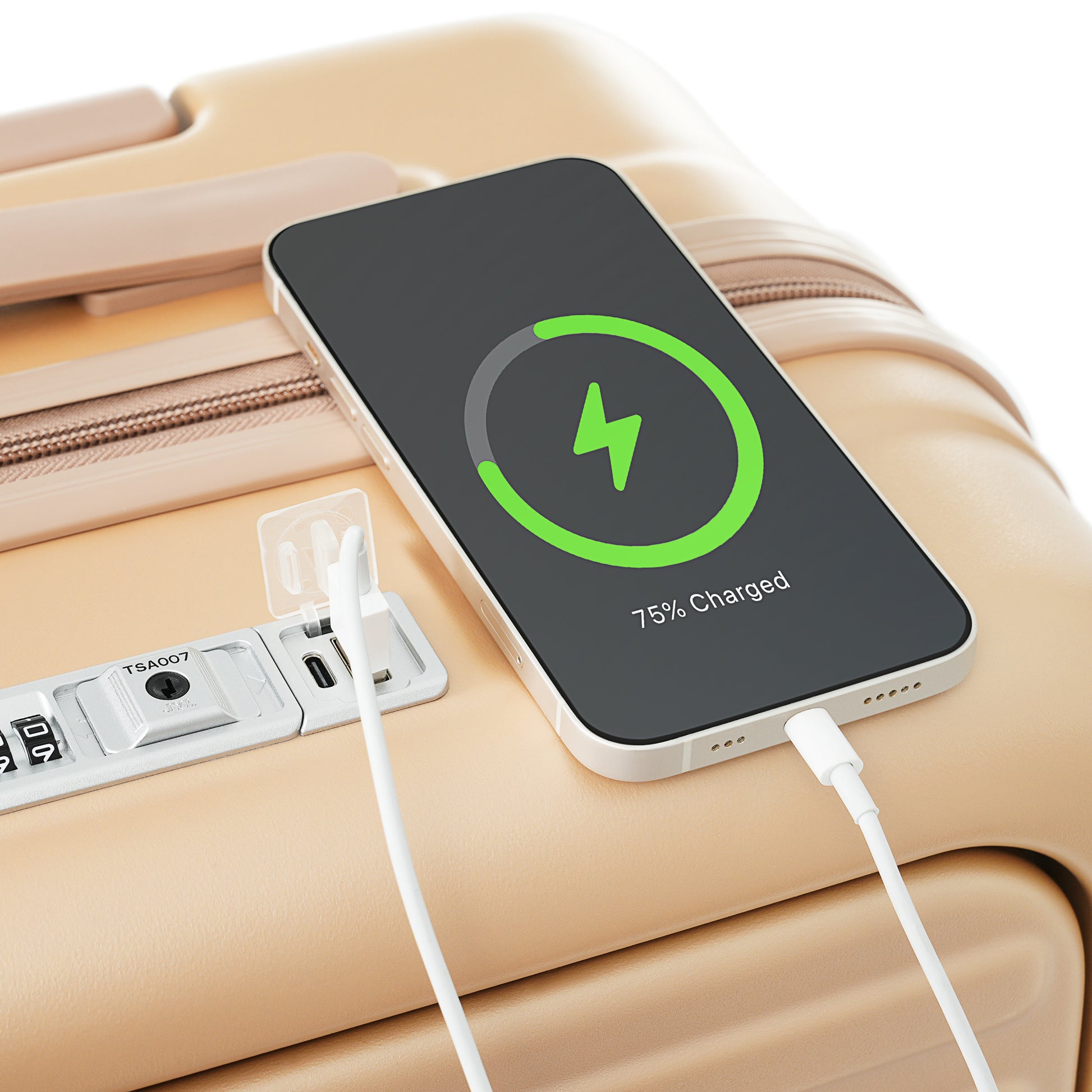 Luggage Set Of 3, 20, 24, 28Inch With Usb Port, 20, 24Inch With Front Opening Design Airline Certified Carry On Luggage With Cup Holder, Abs Hard Shell Luggage With Spinner Wheels, Champagne