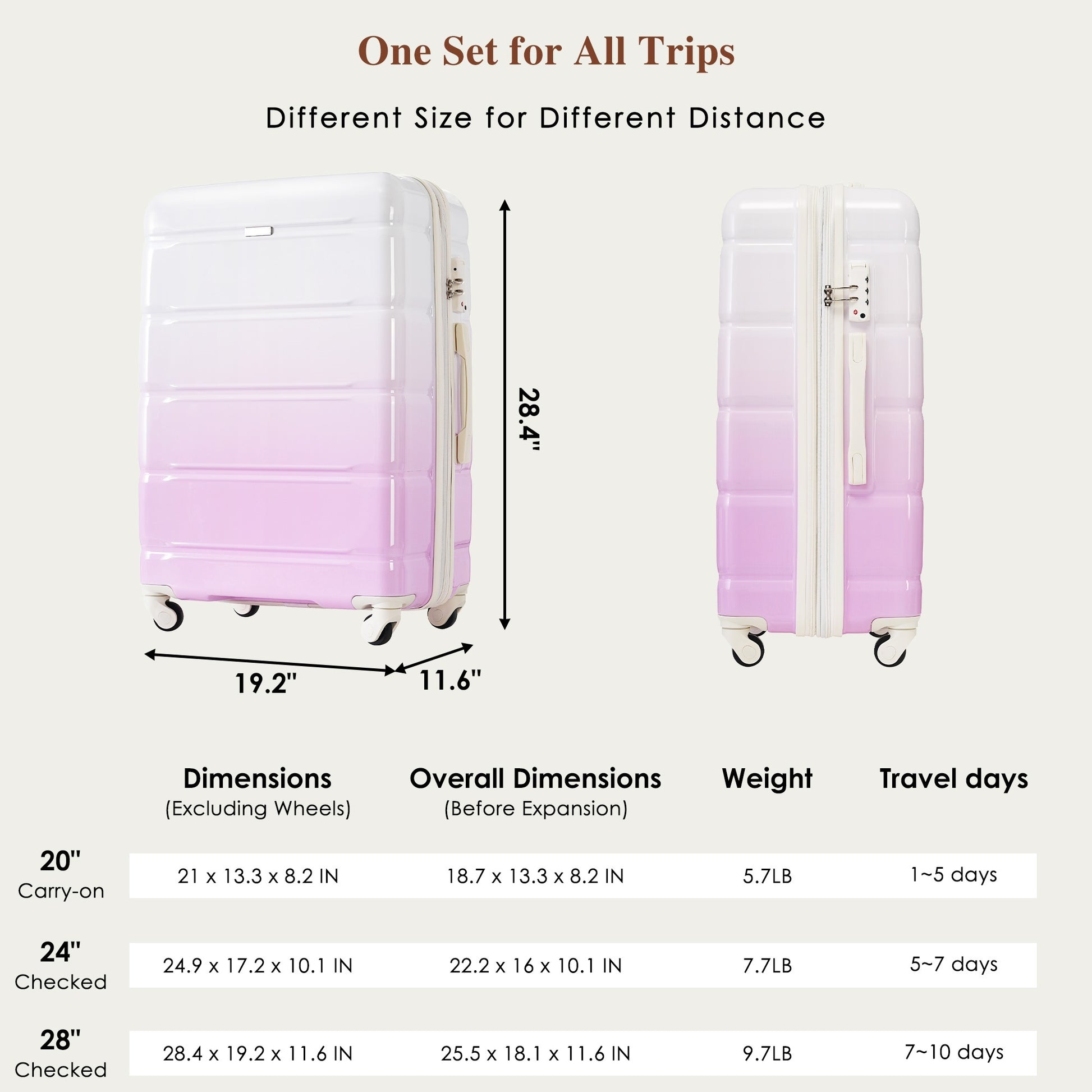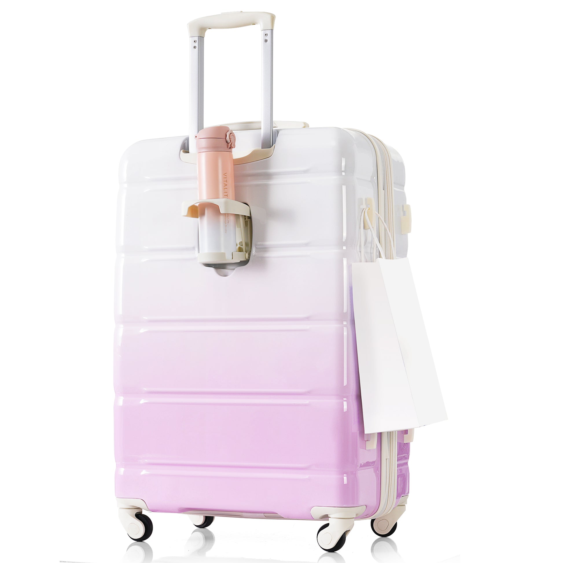 Luggage Set Of 3, 20 Inch With Usb Port, Airline Certified Carry On Luggage With Cup Holder, Abs Pc Hard Shell Luggage With Spinner Wheels, Purple, Products In Stock Mid May Purple Abs Pc