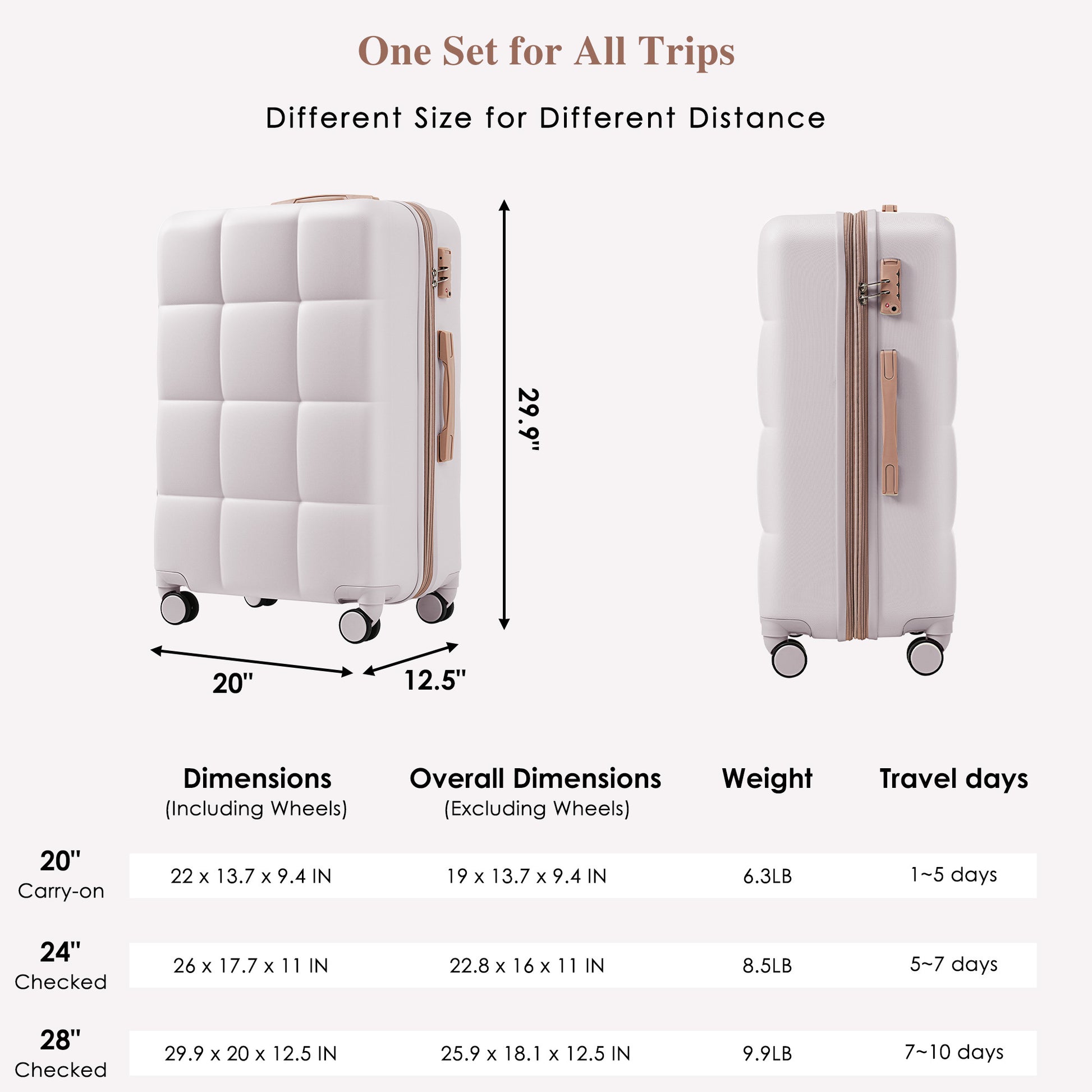 Luggage Set Of 3, 20 Inch With Usb Port, Airline Certified Carry On Luggage With Cup Holder, Abs Hard Shell Luggage With Spinner Wheels, Light Grey Grey Abs