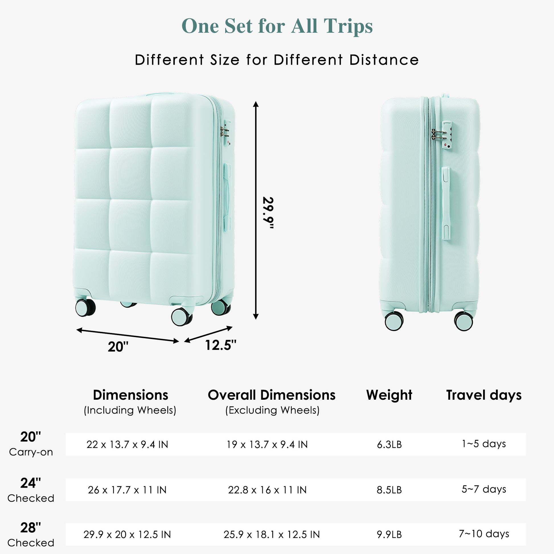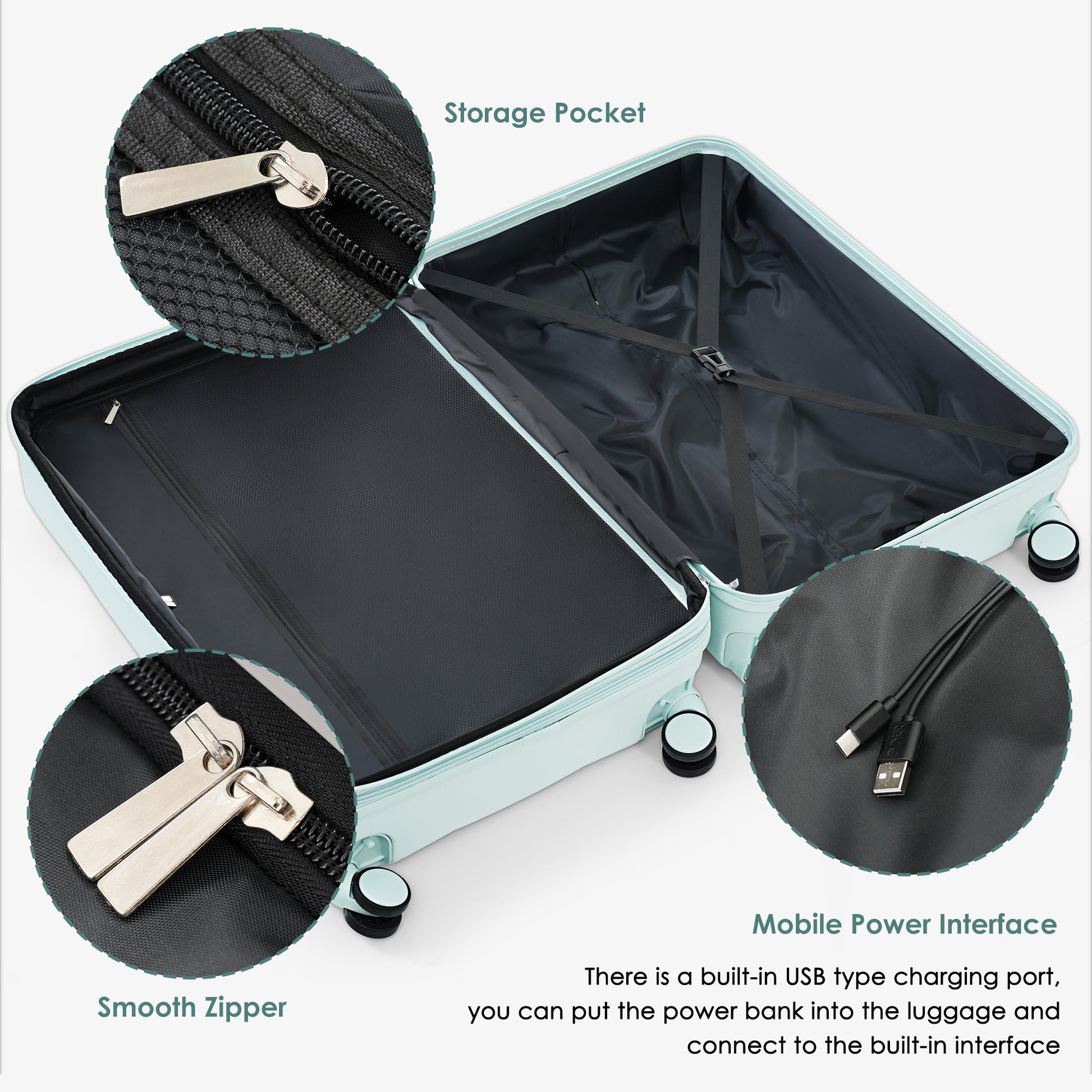 Luggage Set Of 3, 20 Inch With Usb Port, Airline Certified Carry On Luggage With Cup Holder, Abs Hard Shell Luggage With Spinner Wheels, Grey Green Green Abs