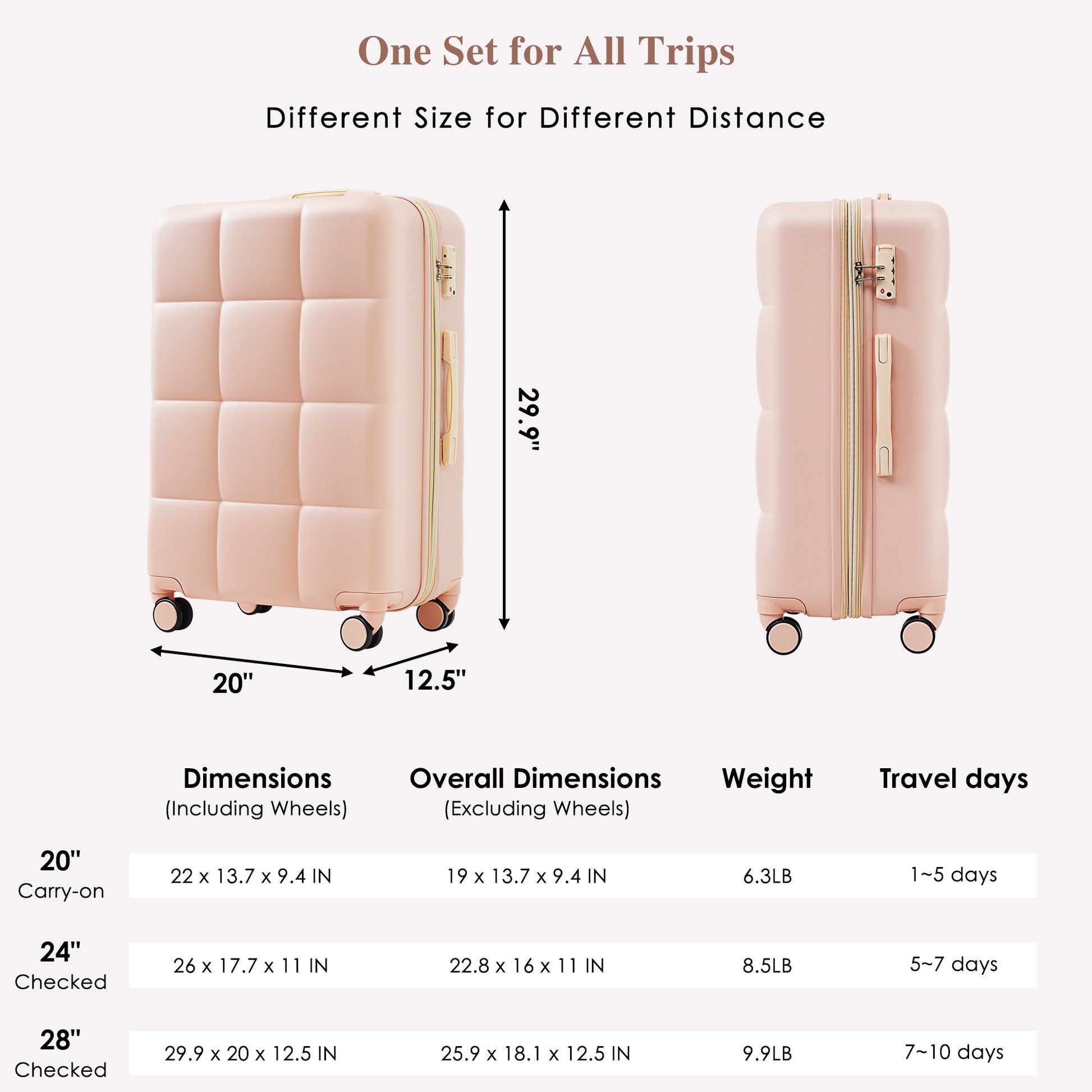 Luggage Set Of 3, 20 Inch With Usb Port, Airline Certified Carry On Luggage With Cup Holder, Abs Hard Shell Luggage With Spinner Wheels, Pink Pink Abs