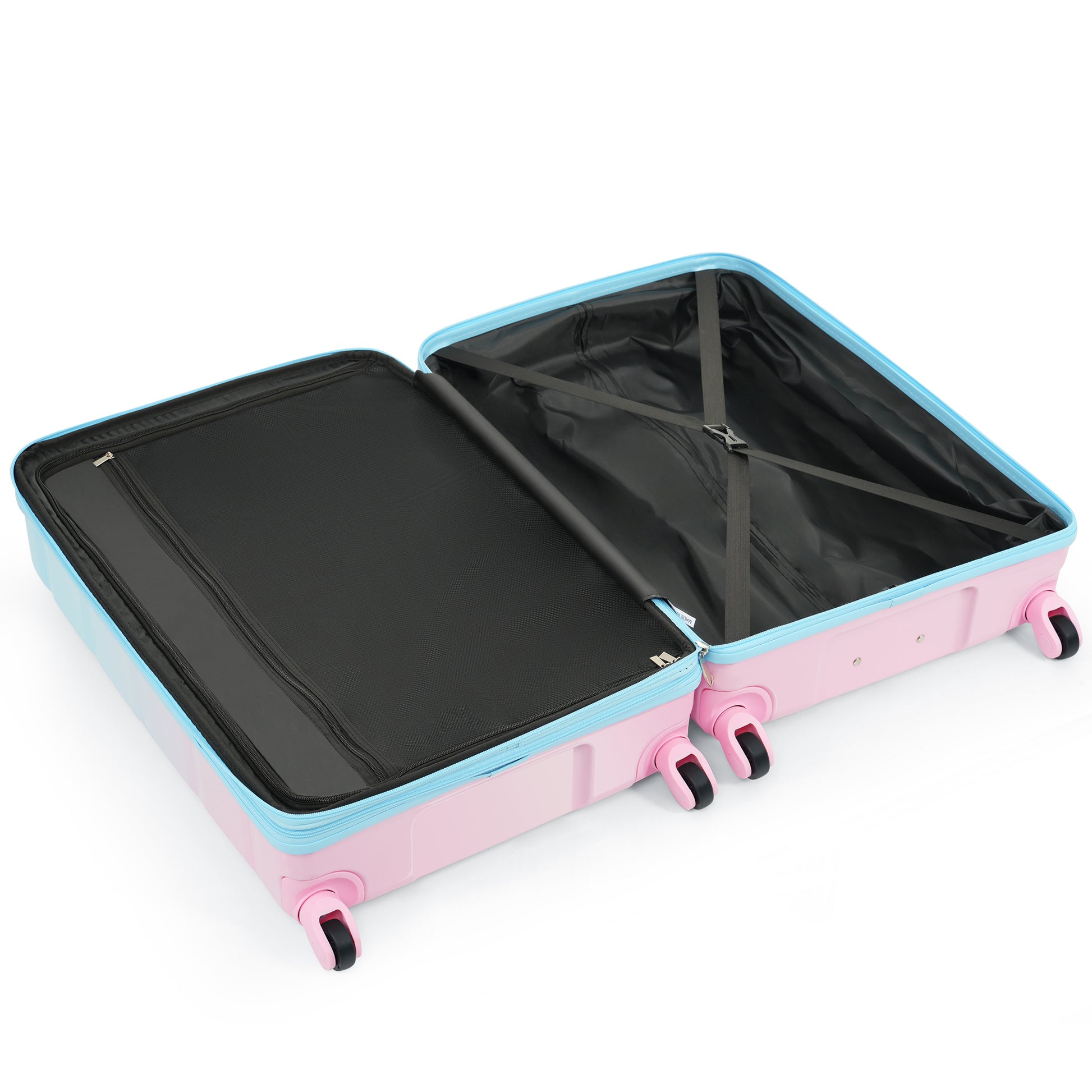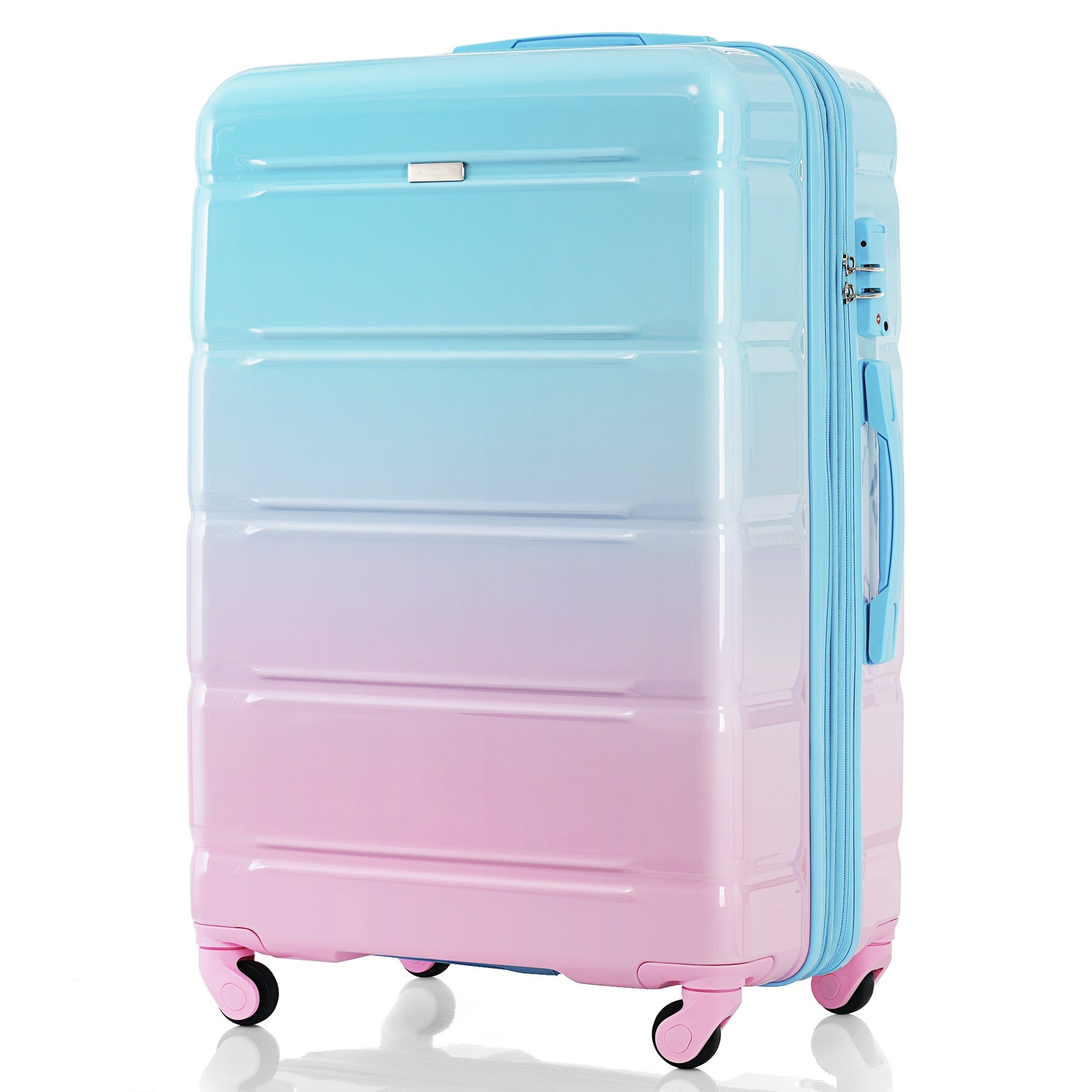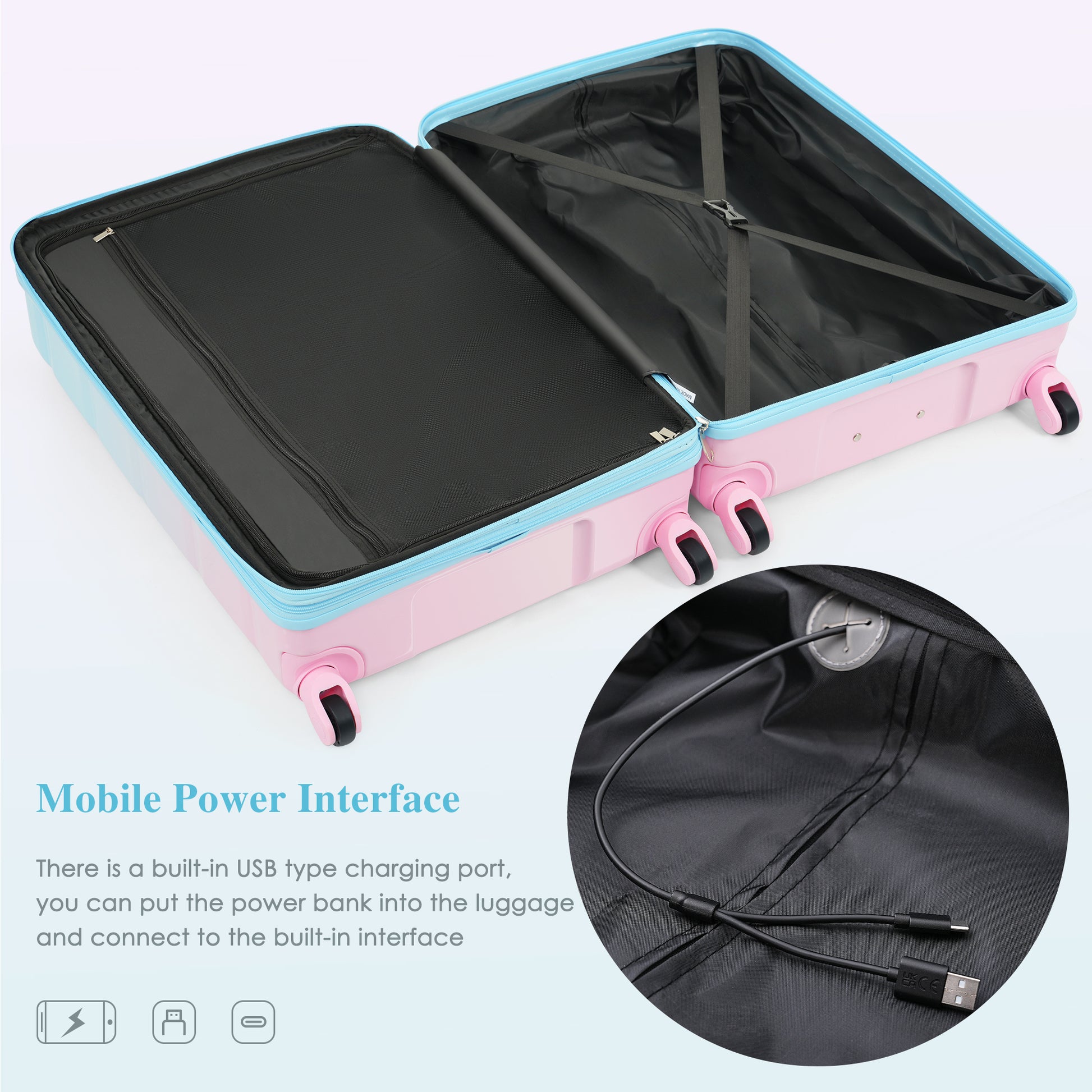 Luggage Set Of 3, 20 Inch With Usb Port, Airline Certified Carry On Luggage With Cup Holder, Abs Pc Hard Shell Luggage With Spinner Wheels, Light Blue Light Blue Abs Pc