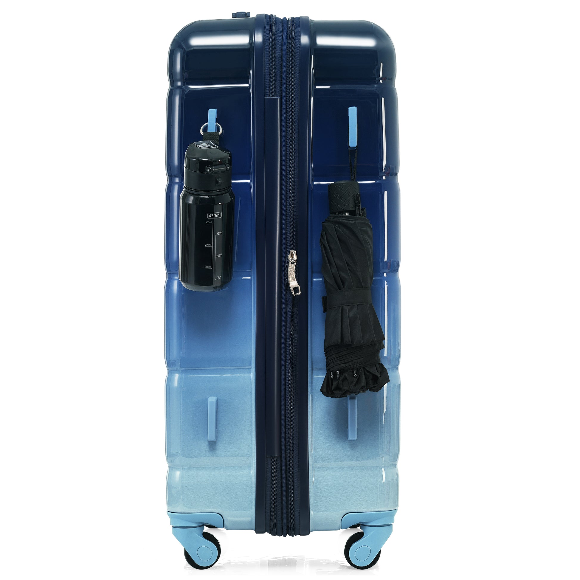 Luggage Set Of 3, 20 Inch With Usb Port, Airline Certified Carry On Luggage With Cup Holder, Abs Pc Hard Shell Luggage With Spinner Wheels, Gradient Blue Blue Abs Pc