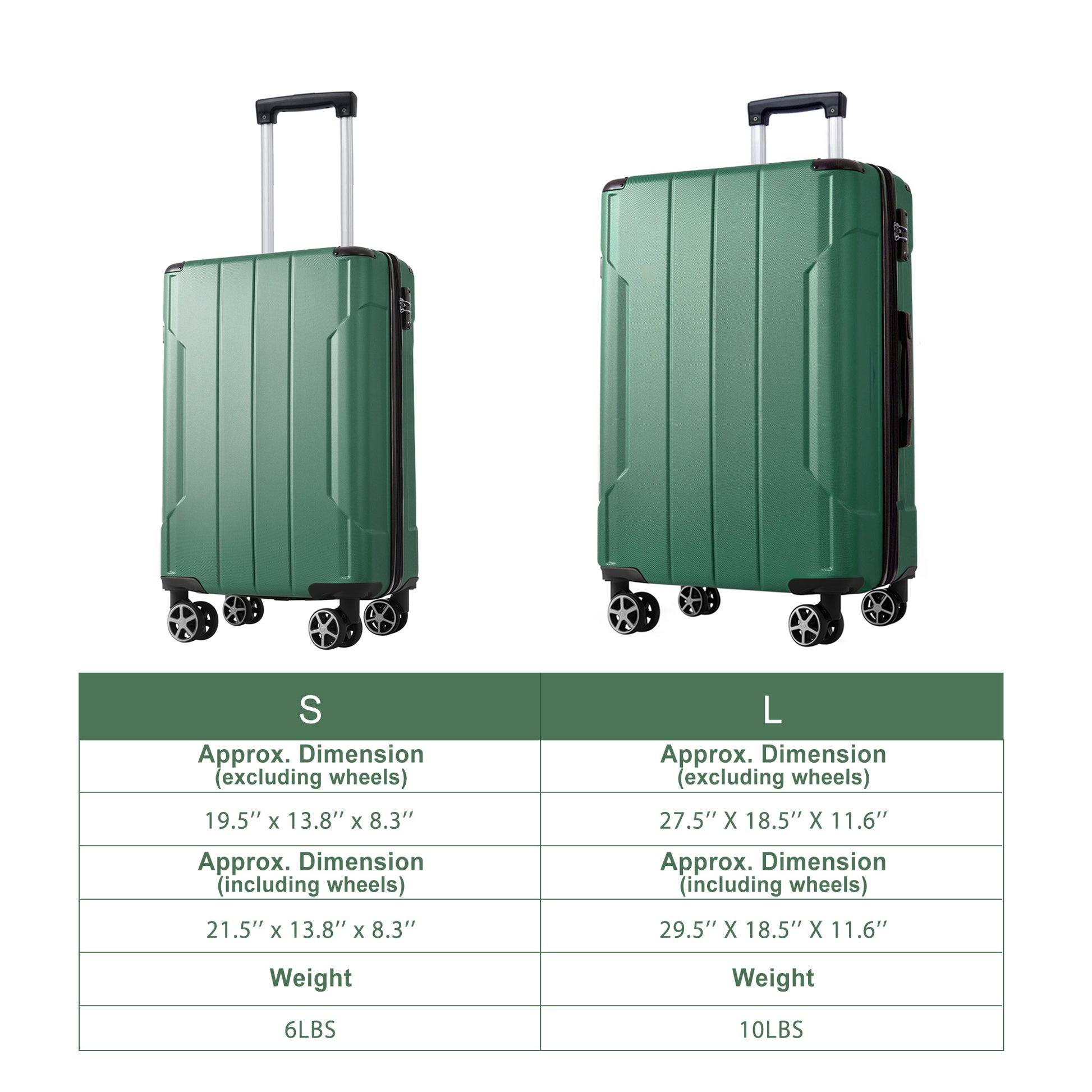 Luggage Sets 2 Piece, Hardshell Abs Lightweight And Expandable Only 28" Suitcases With Double Wheels, Carry On Luggage, 2 Piece Set 20 28 , Green Green Abs