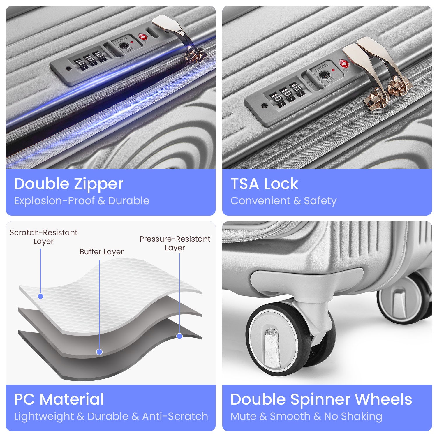 Luggage Sets 3 Piece 20 24 28 , Expandable Carry On Luggage With Tsa Lock Airline Approved, 100% Pc Hard Shell And Lightweight Suitcase With Front Pocket And Spinner Wheels Silver Pc