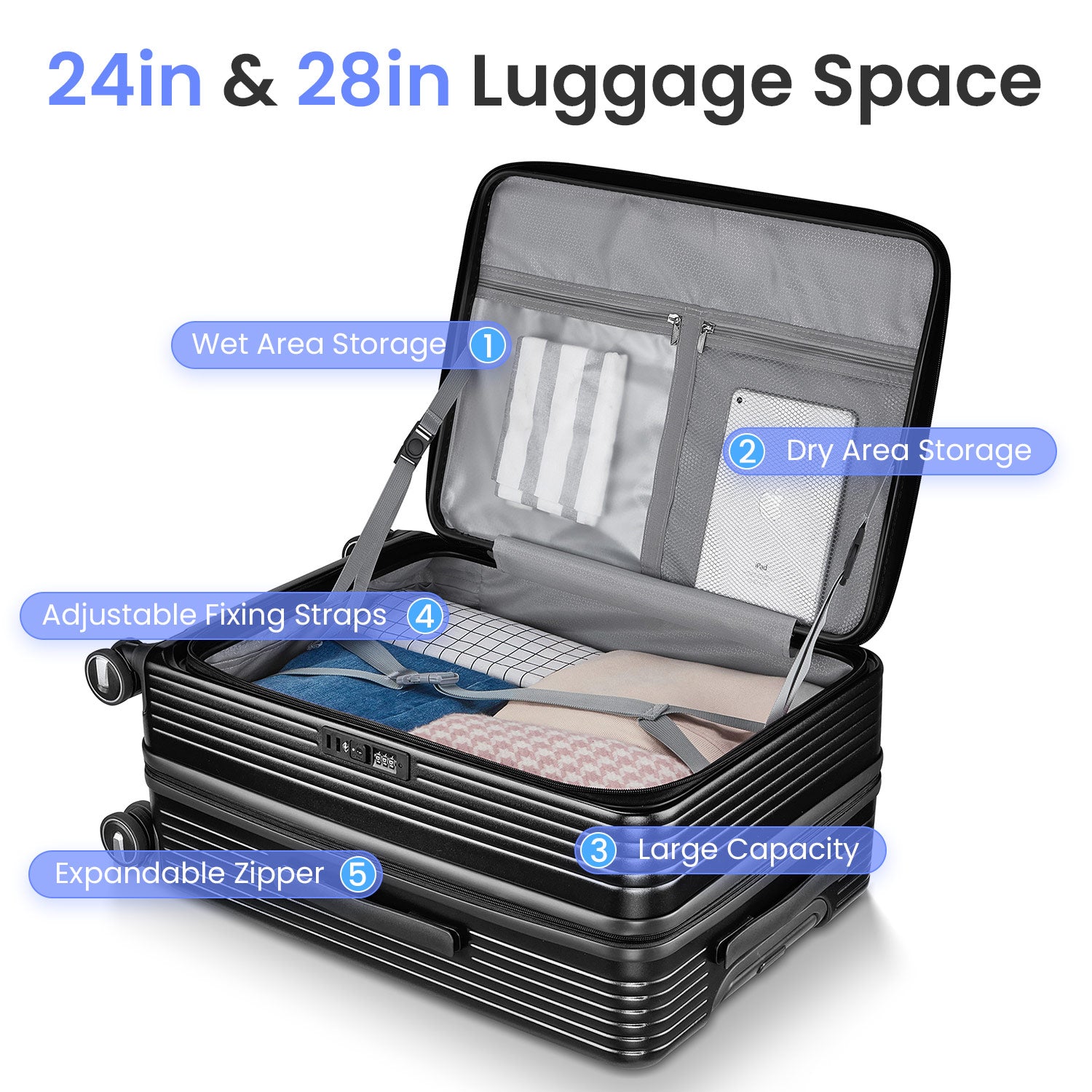 Luggage Sets 3 Piece 20 24 28 , Expandable Carry On Luggage With Tsa Lock Airline Approved, 100% Pc Hard Shell And Lightweight Suitcase With Front Pocket And Spinner Wheels Black Pc