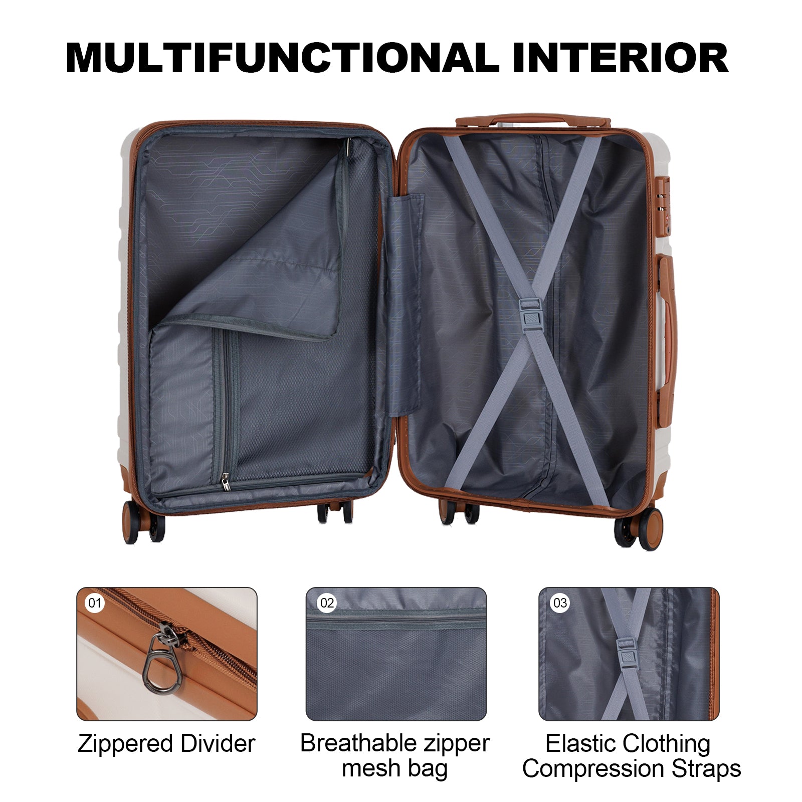 Luggage Sets 3 Piece,Carry On Luggage With Wheels,Check In Luggage,28 24 20 Inch Luggage,Tsa Approved Lock,Hardshell Suitcase,Blue ,Beige Beige Abs