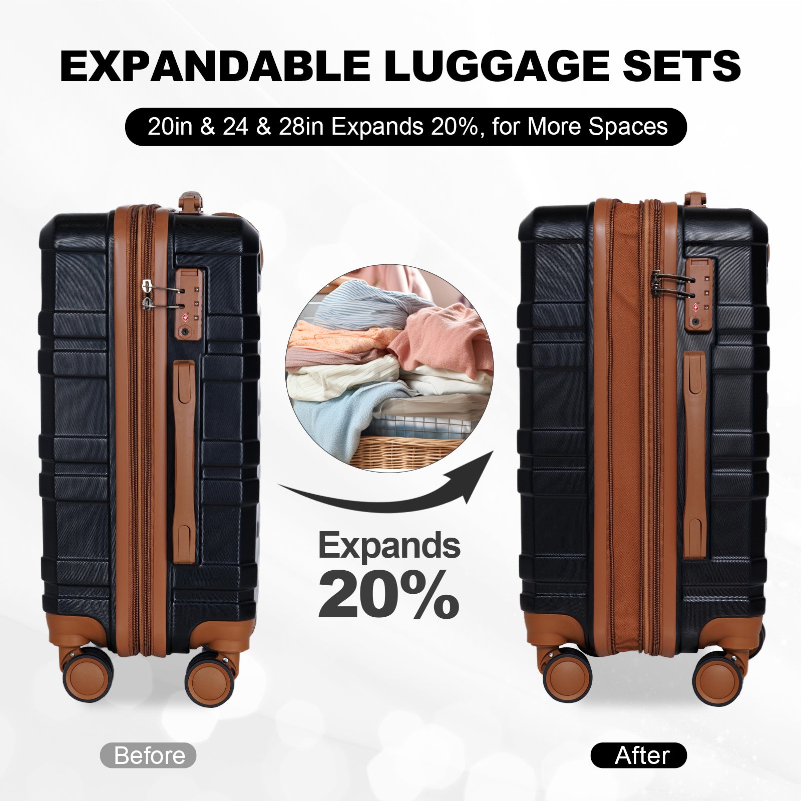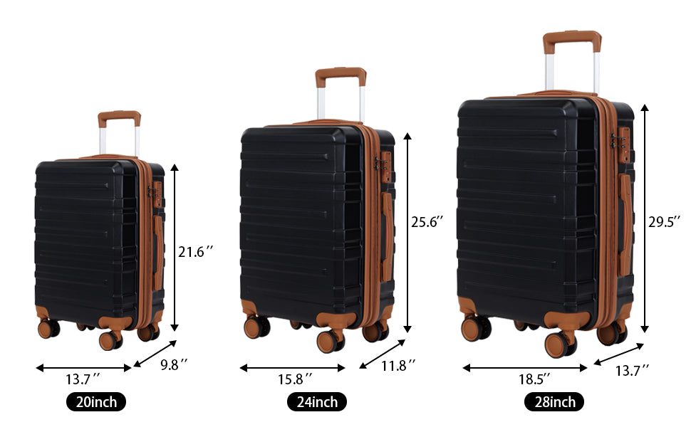 Luggage Sets 3 Piece,Carry On Luggage With Wheels,Check In Luggage,28 24 20 Inch Luggage,Tsa Approved Lock,Hardshell Suitcase,Blue ,Black Black Abs