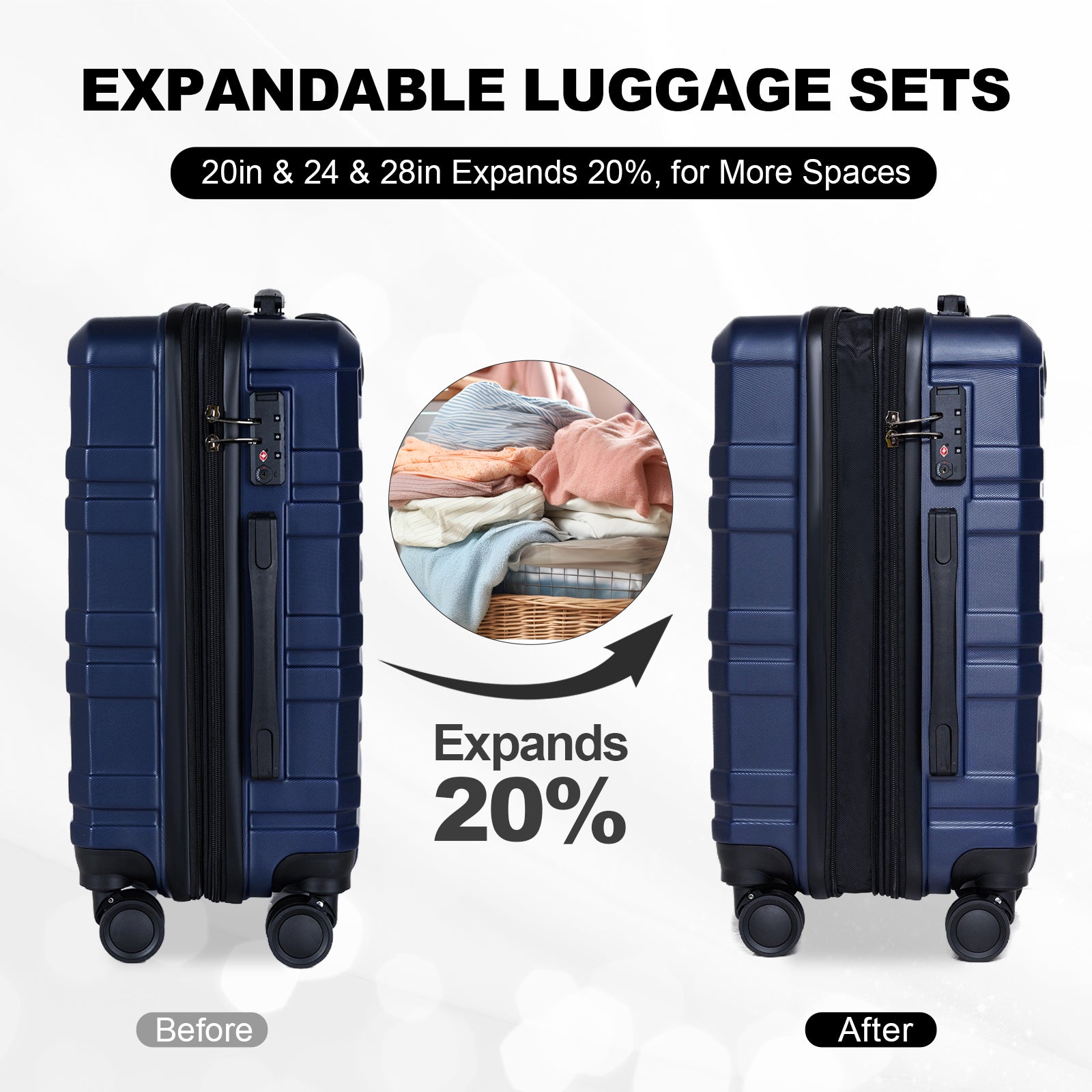 Luggage Sets 3 Piece,Carry On Luggage With Wheels,Check In Luggage,28 24 20 Inch Luggage,Tsa Approved Lock,Hardshell Suitcase,Blue Blue Abs