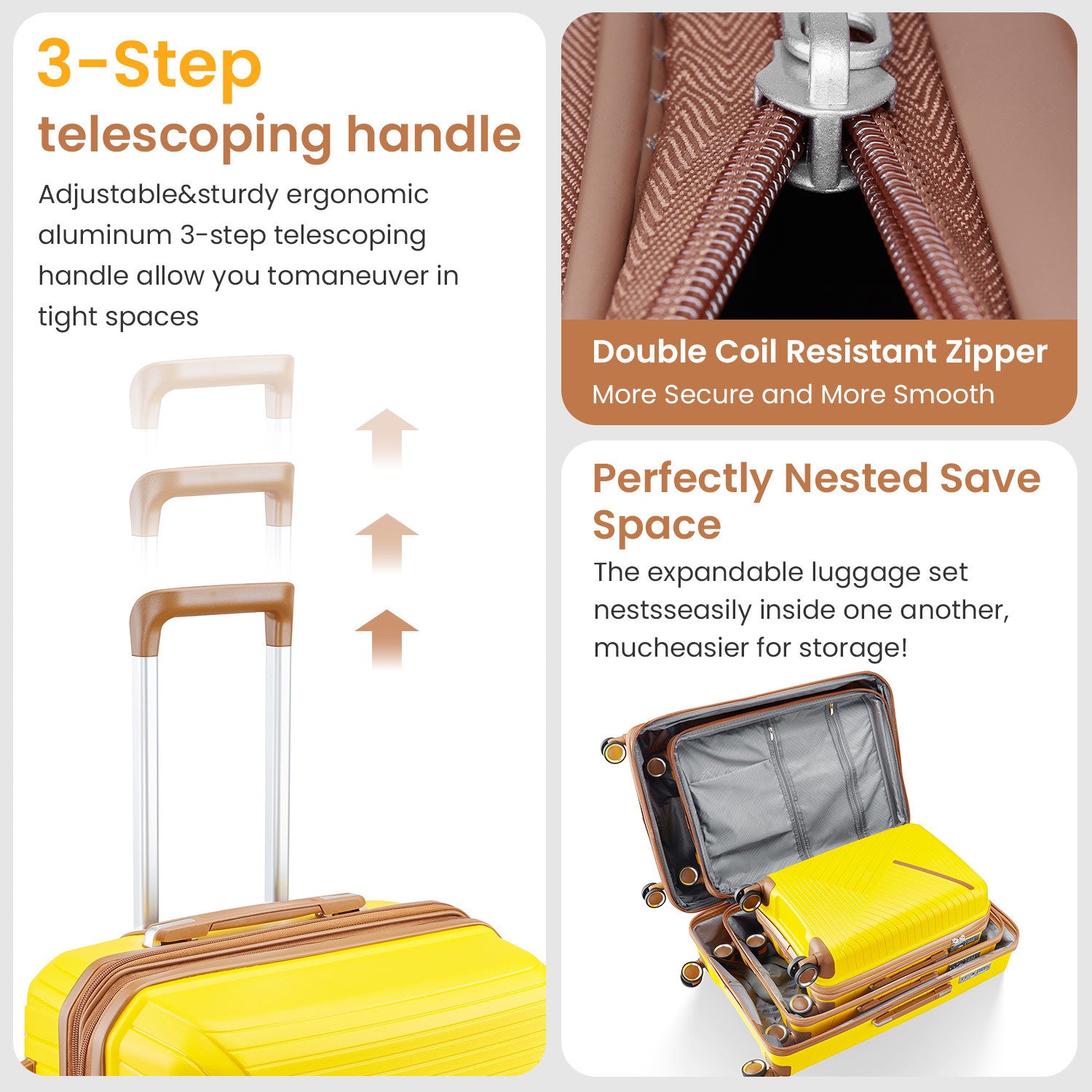 Luggage Sets 4 Piece 14 20 24 28 , Expandable Lightweight Suitcase With 4 Double 360 Degrees Mute Spinner Wheels Pp Materials Durable Tsa Lock Travel Luggage Yellow Polypropylene