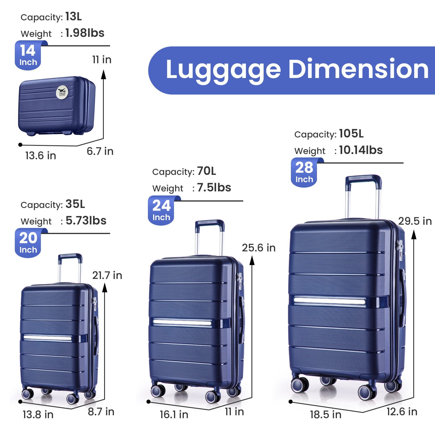Luggage Sets 4 Piece 14 20 24 28 Pp Lightweight & Durable Expandable Suitcase Navy Blue Polypropylene