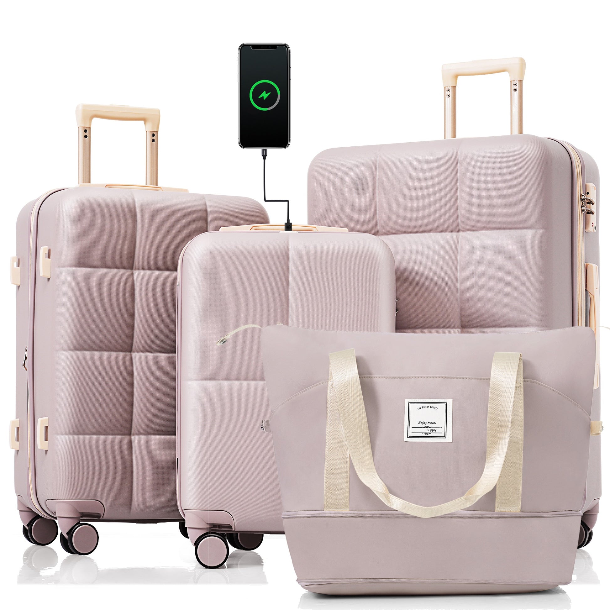 Luggage Sets 4 Piece, 20 Inch With Usb Port, Expandable Abs Durable Suitcase With Travel Bag, Cup Holder, Abs Hard Shell Luggage With Spinner Wheels, Rosybrown Brown Abs